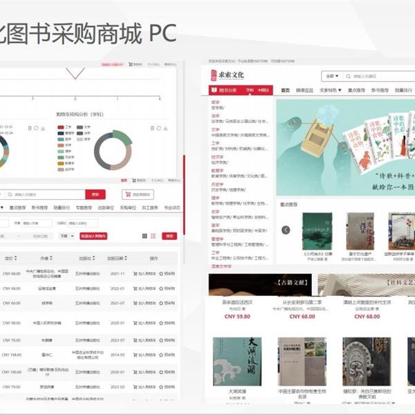 图书采购平台建设,如何进行搭建?分类搭建首页、全部图书、重磅推荐、新书推荐、销量排行、专题推荐、出版单位、采购单位、加工服务、书业动态 [查看]