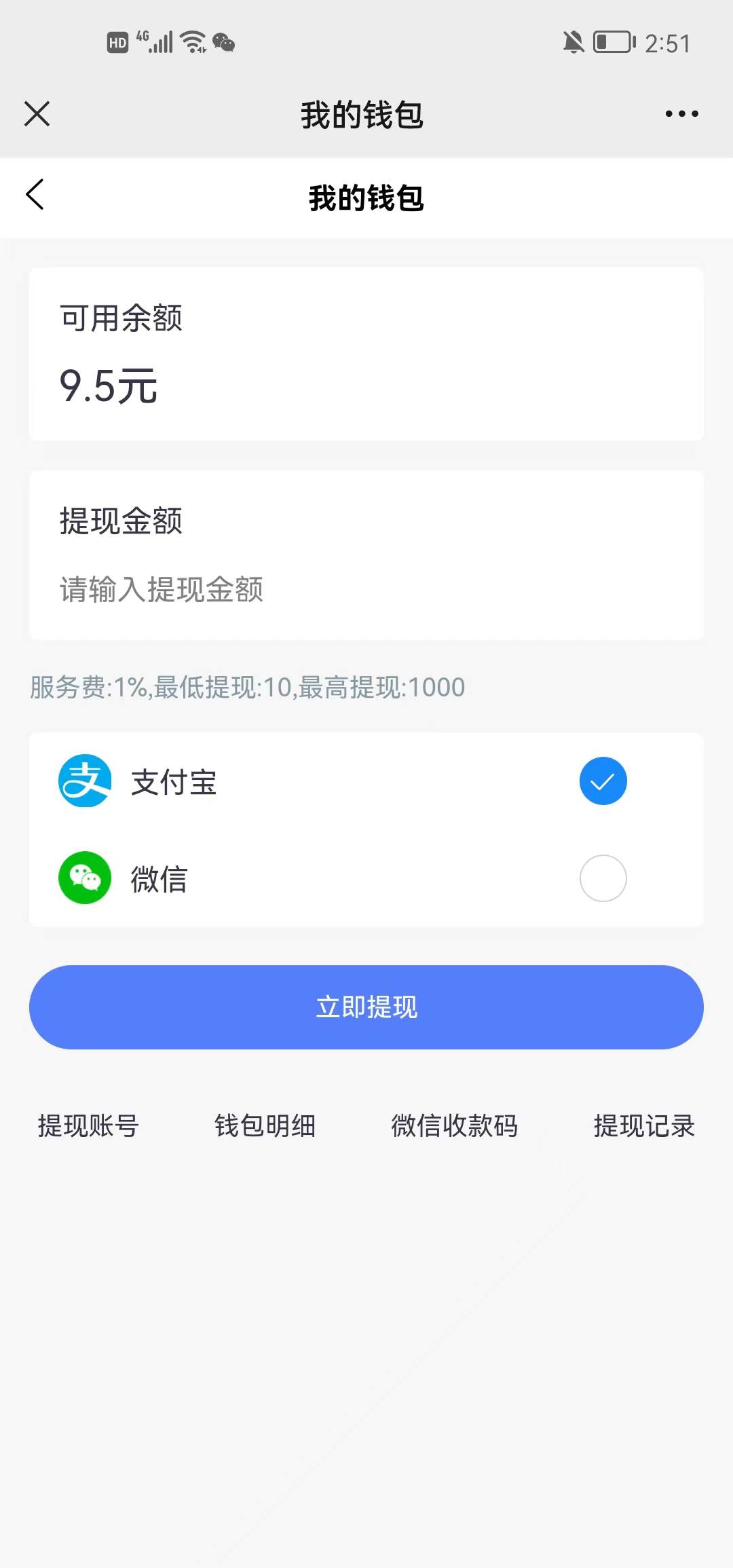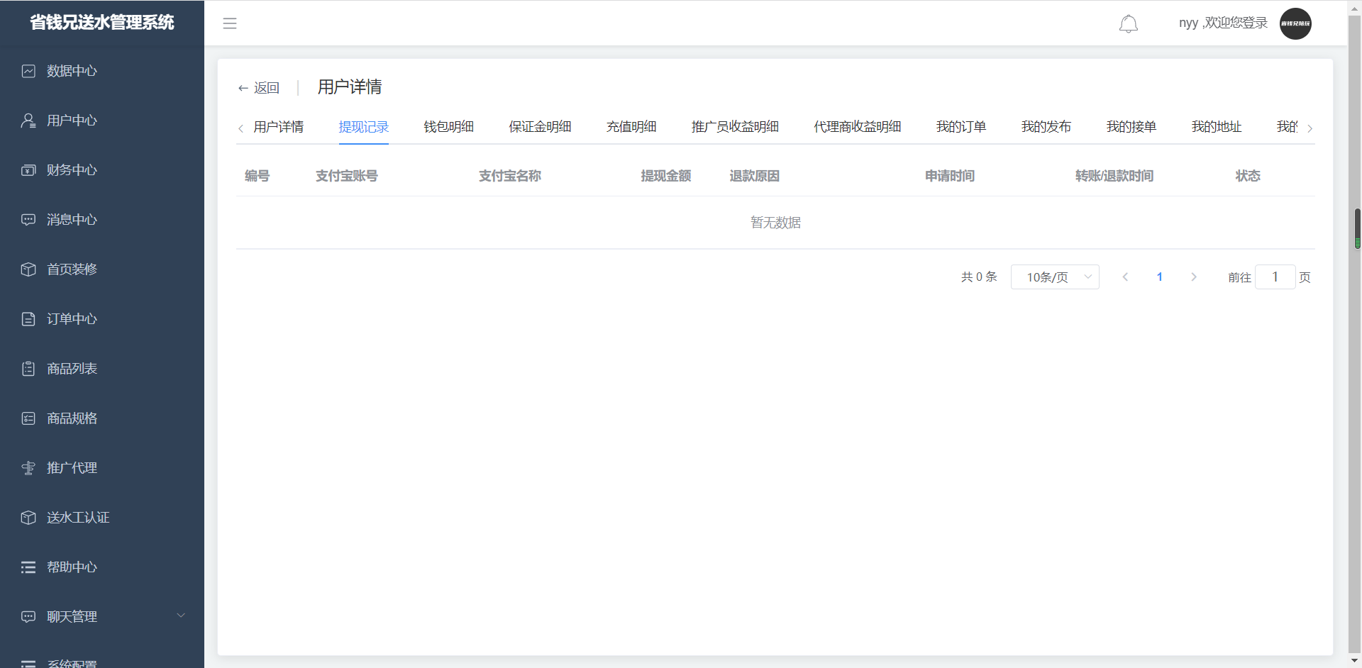 · 点击用户详情,进入提现记录页面,查看我的提现记录。