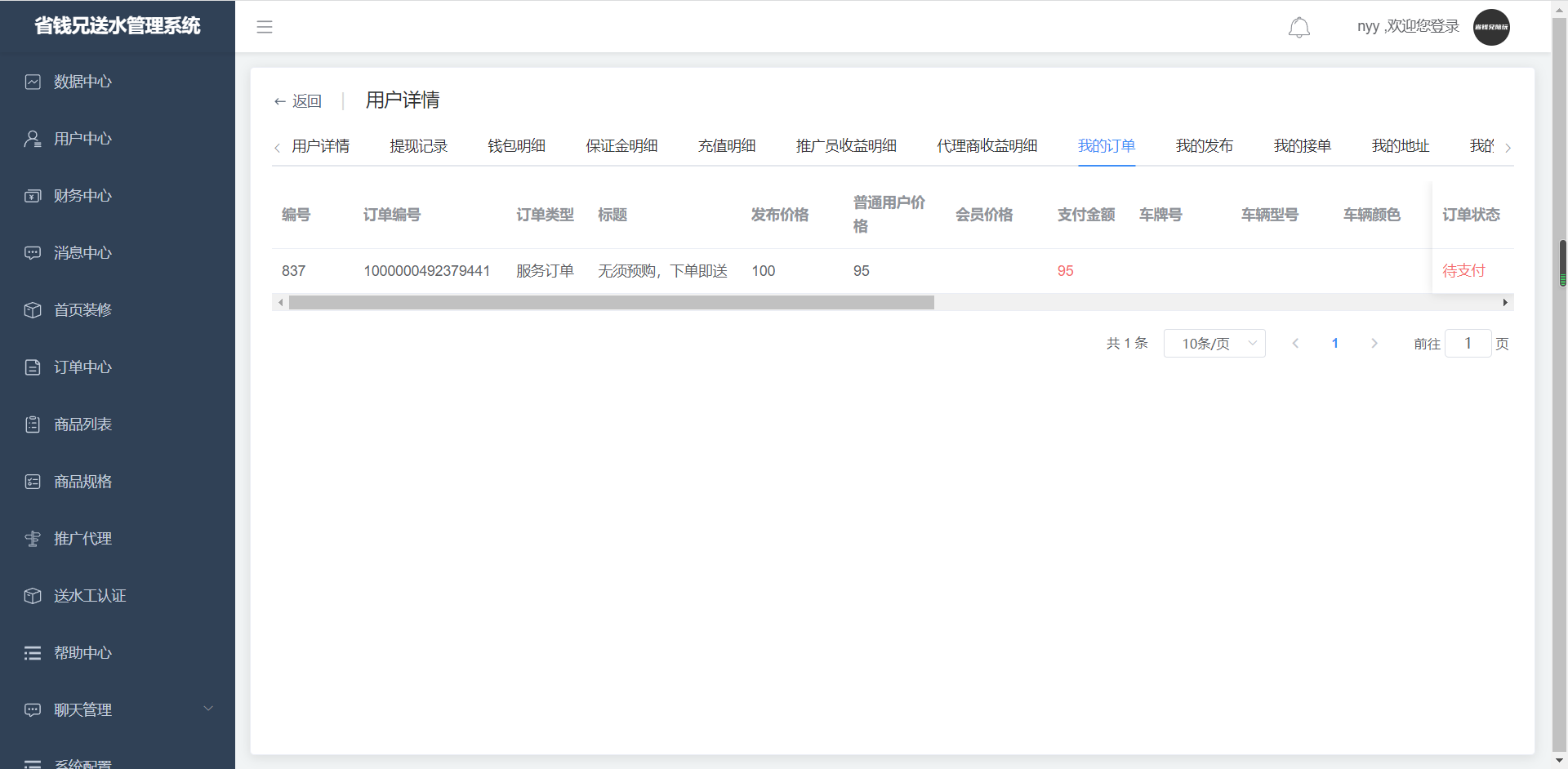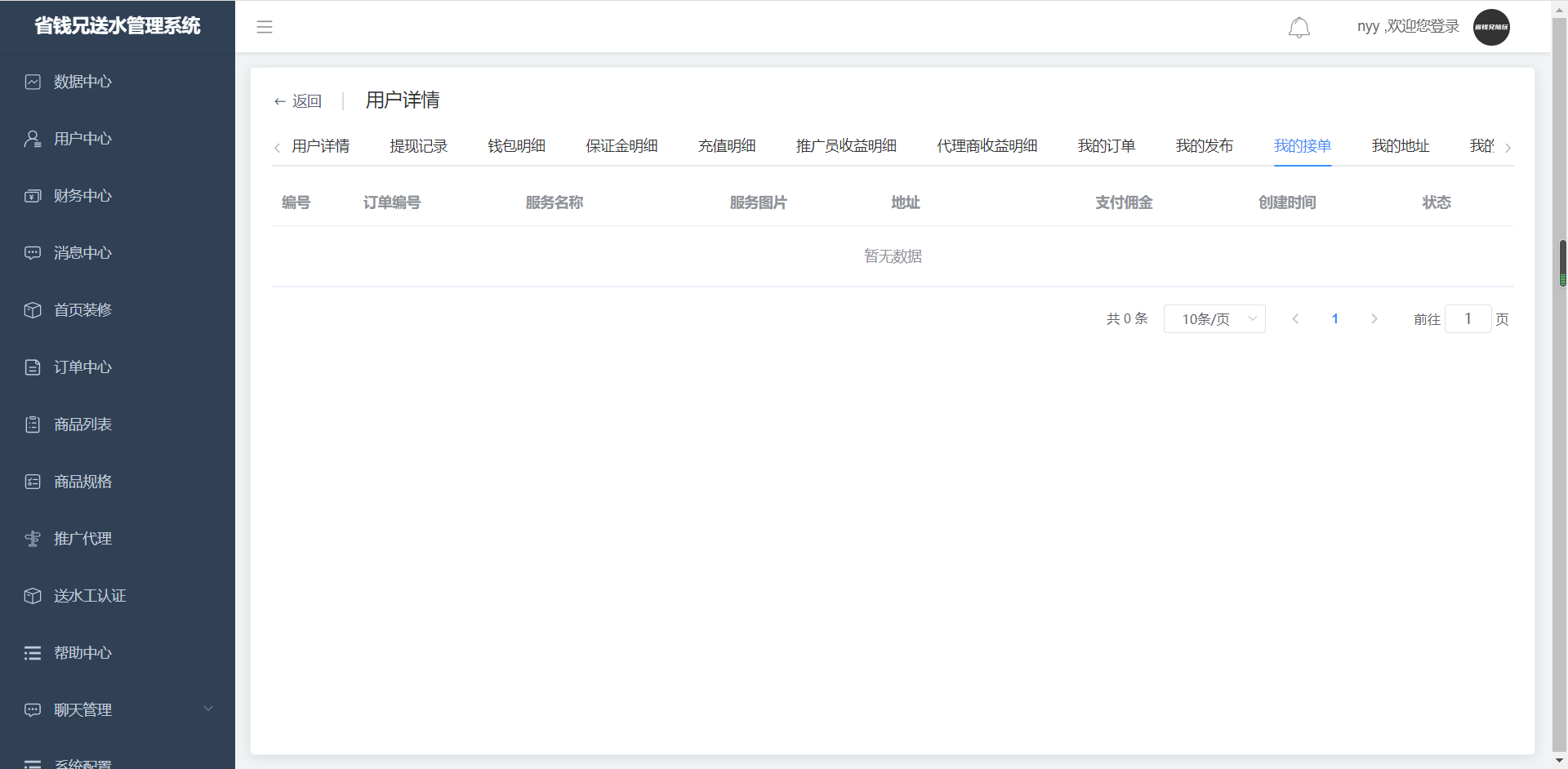 · 点击用户详情,进入我的接单页面,查看我的接单记录。