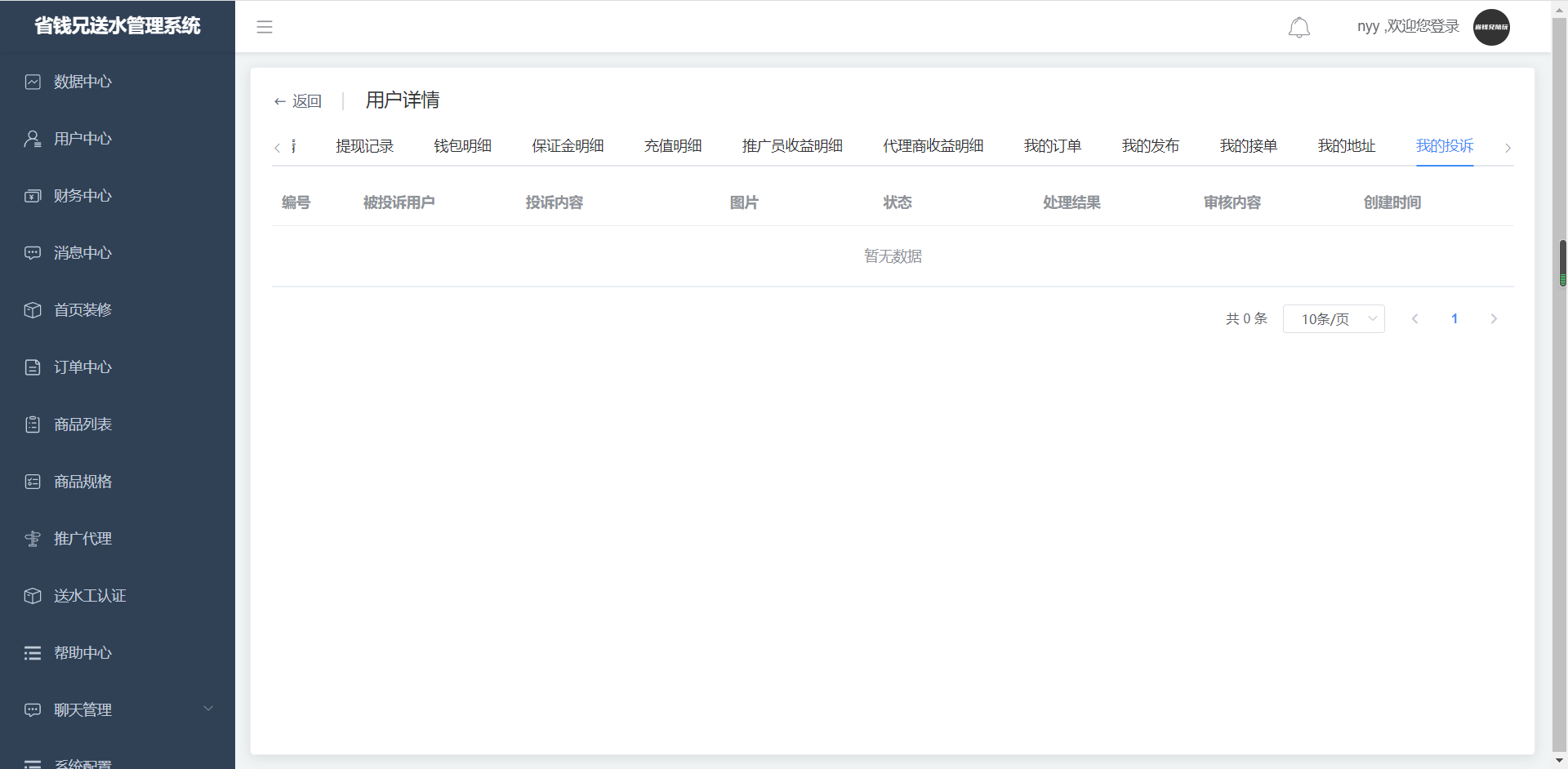 · 点击用户详情,进入我的投诉页面,查看我投诉。