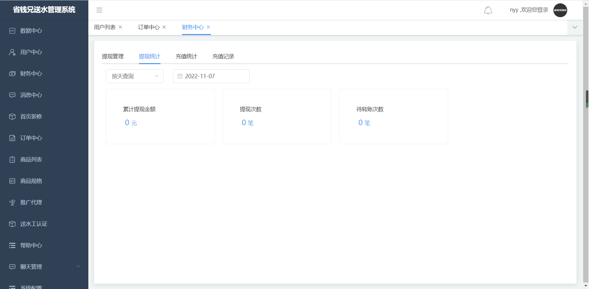 2.提现统计。可根据时间进行筛选查看