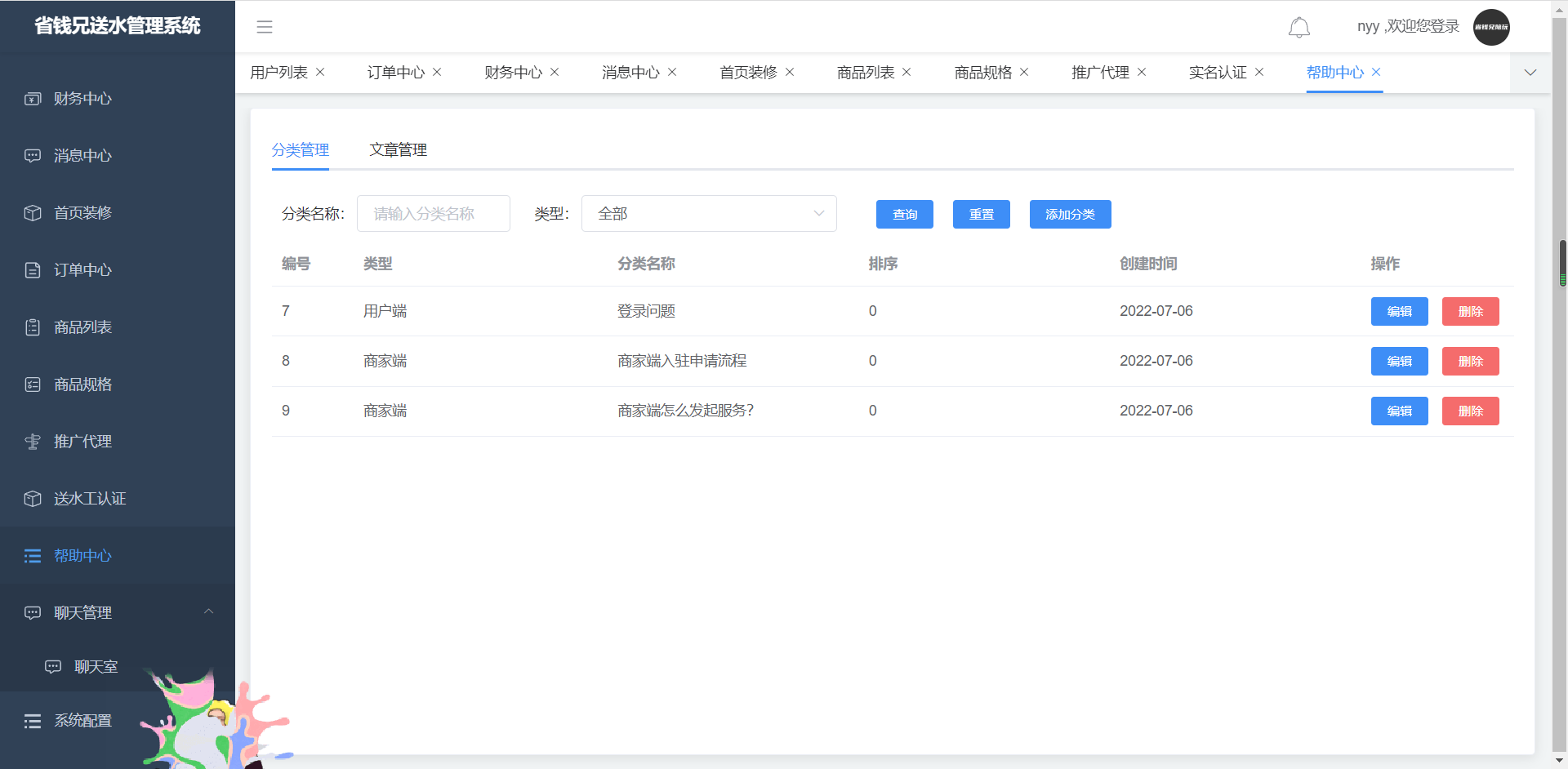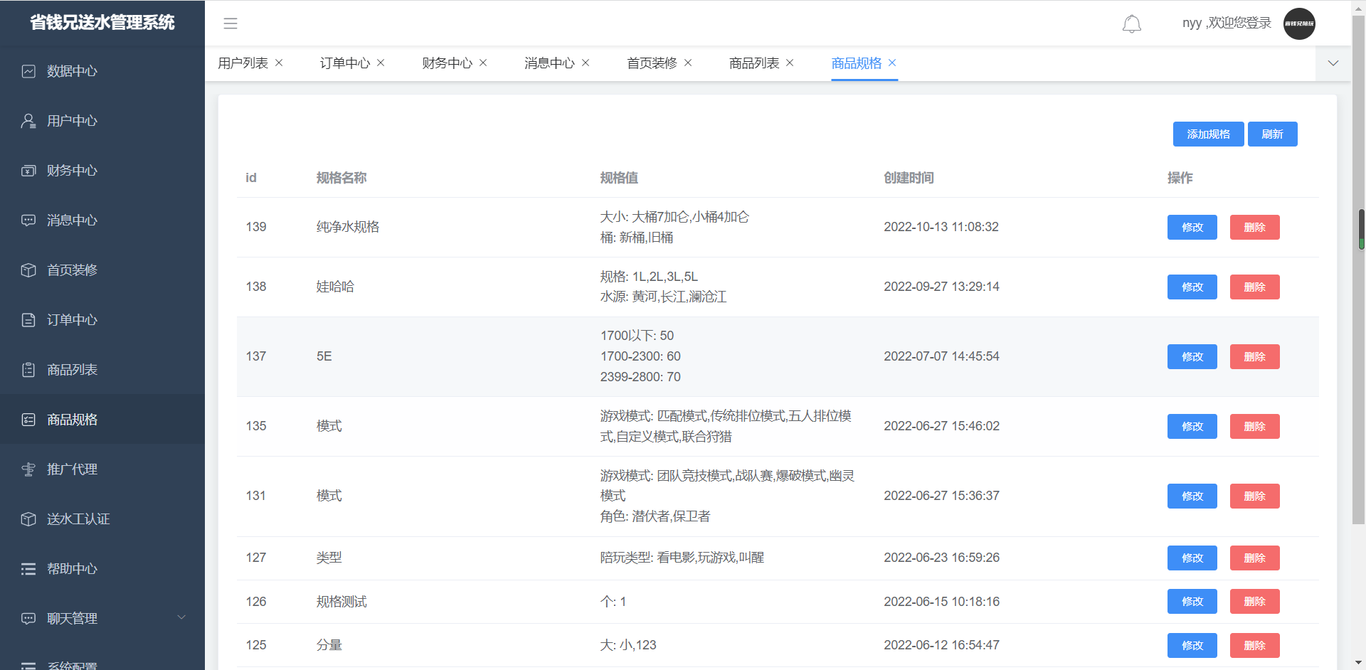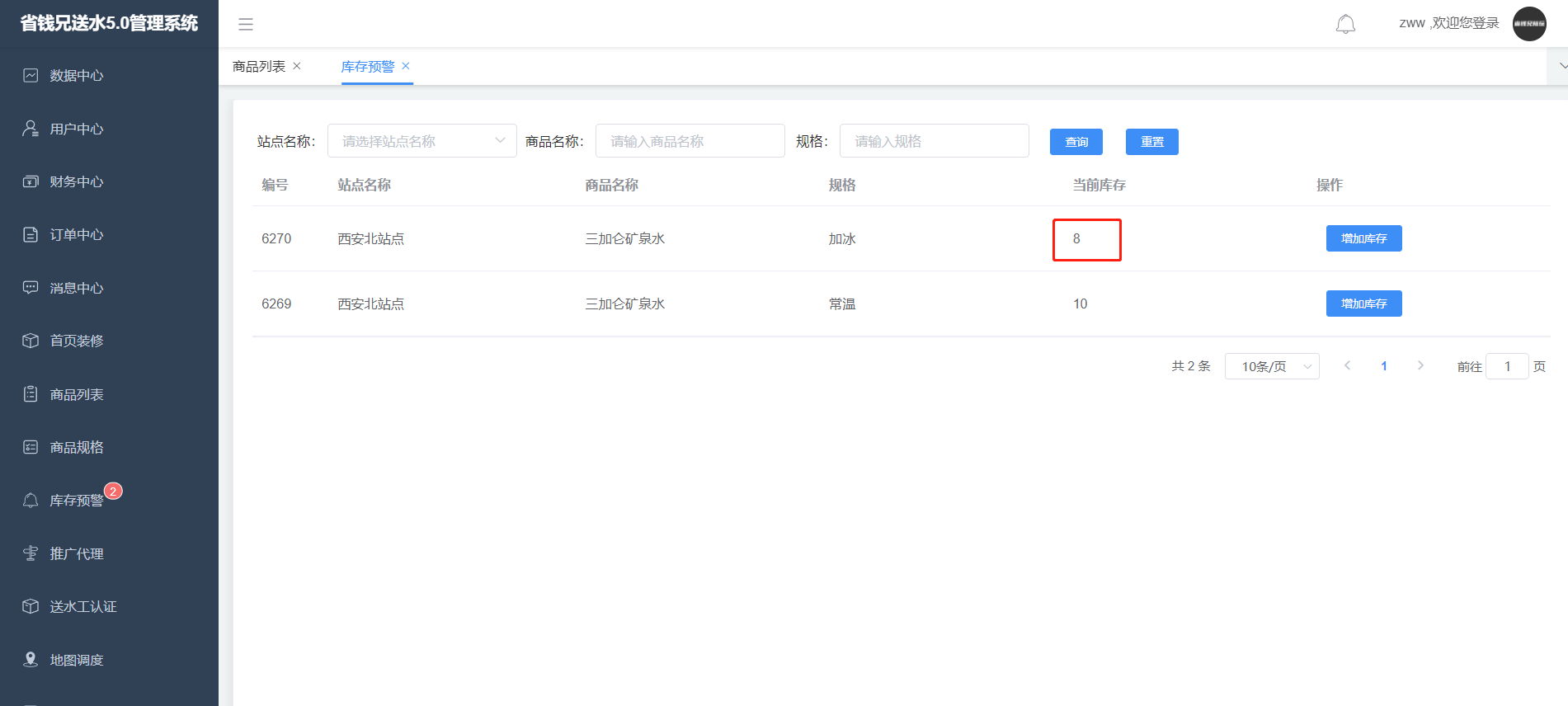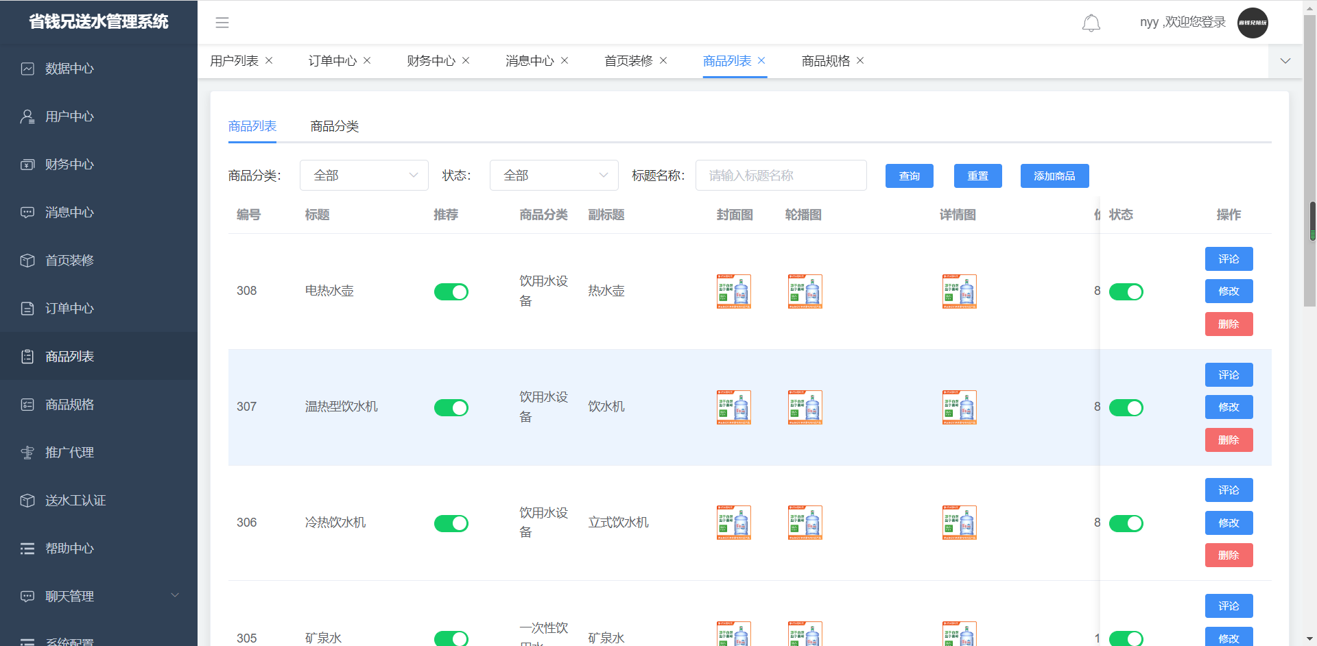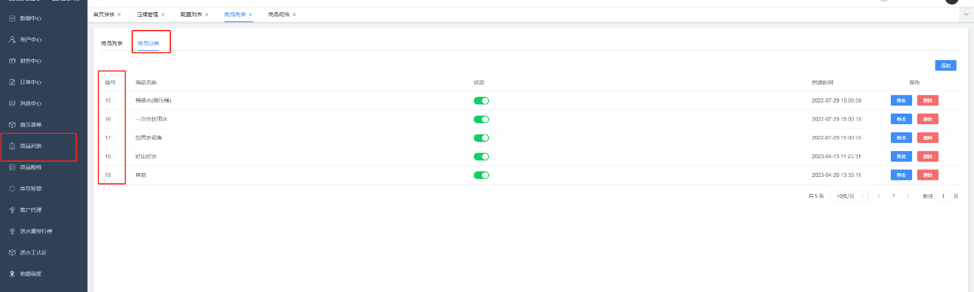1.添加管理所有 桶装水商品信息