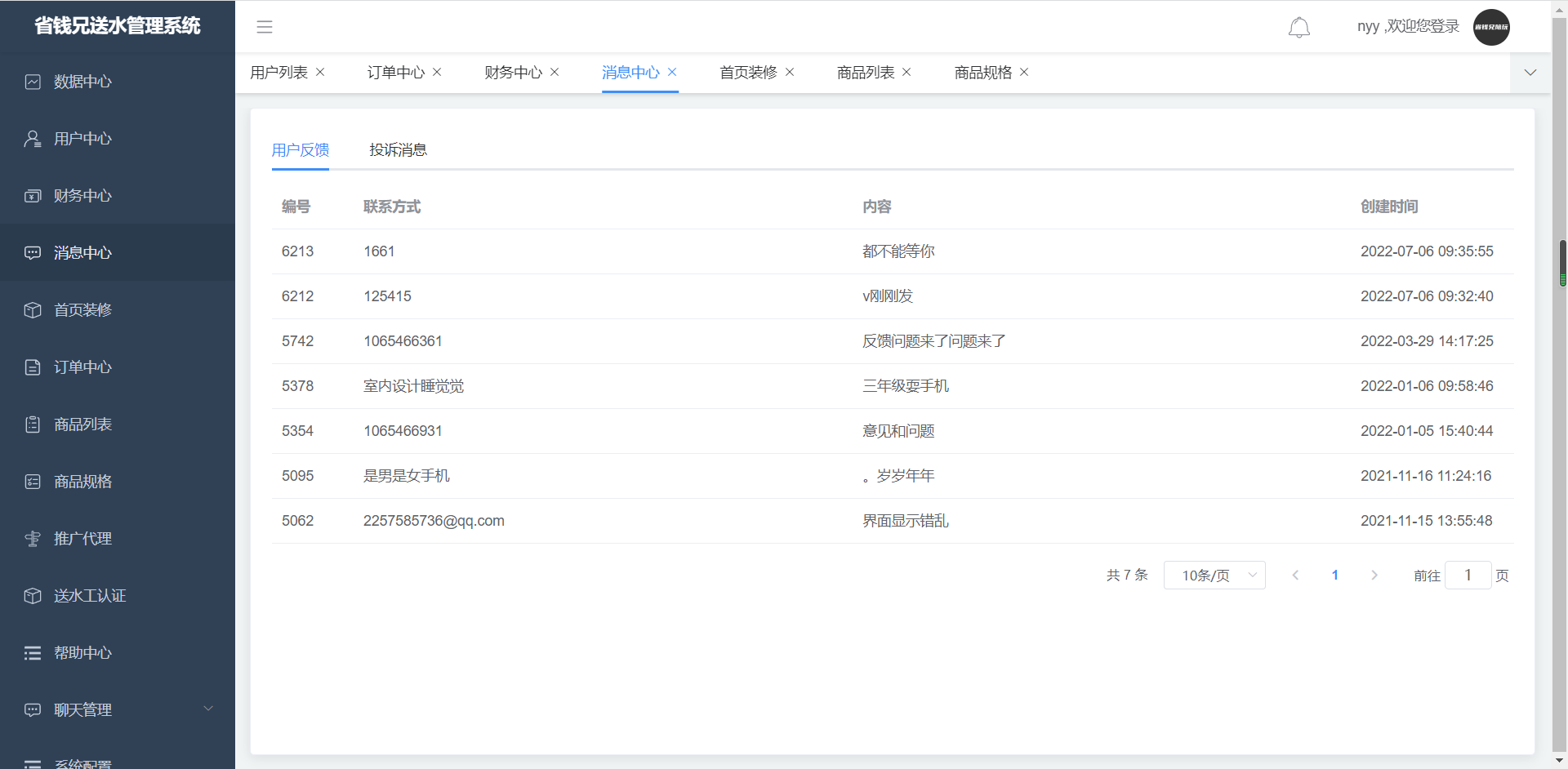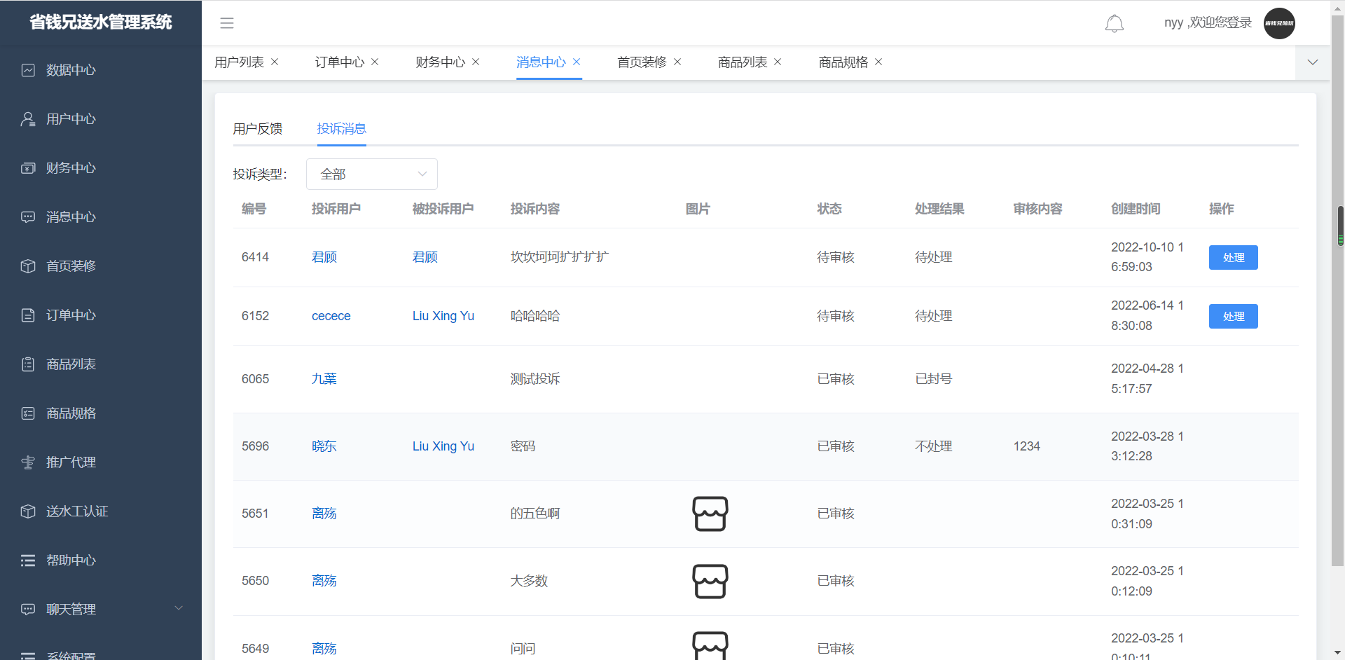 ·投诉消息,点击用户详情可查看用户详情信息