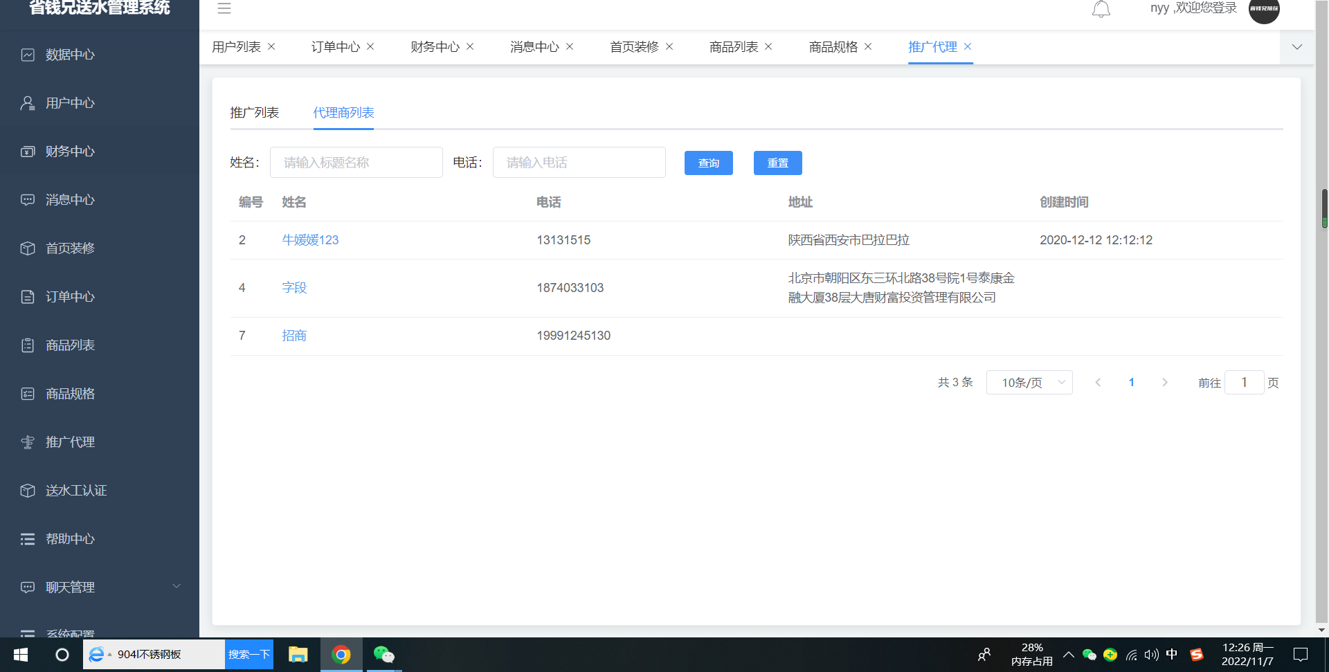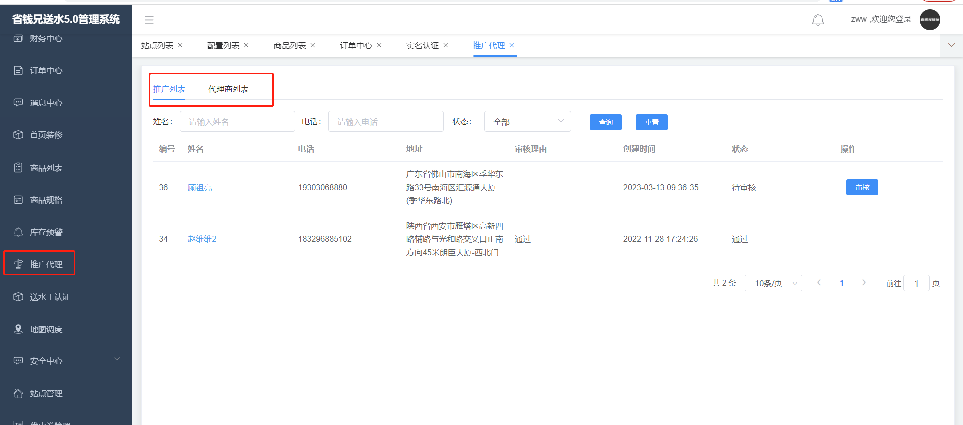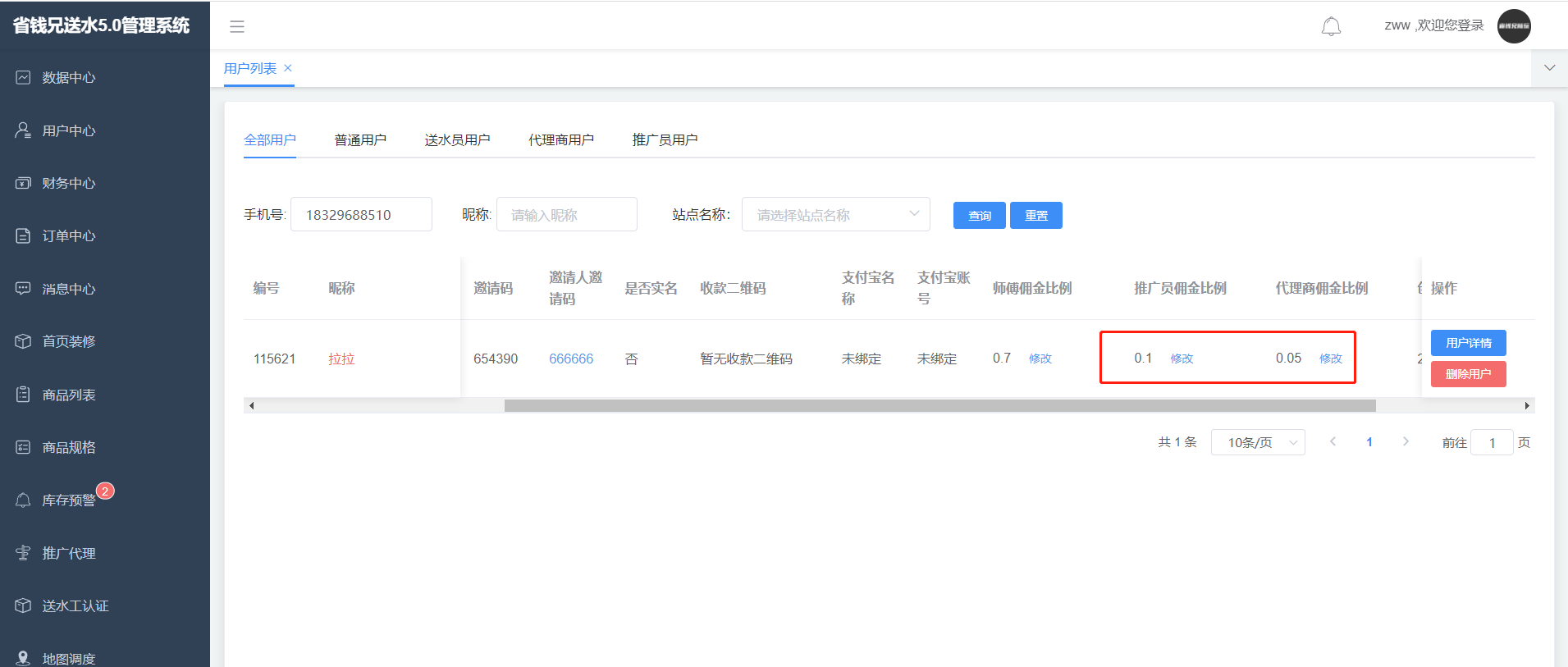 邀请的用户可在代理商中心和 推广中心展示,代理商和推广员的收益可提现