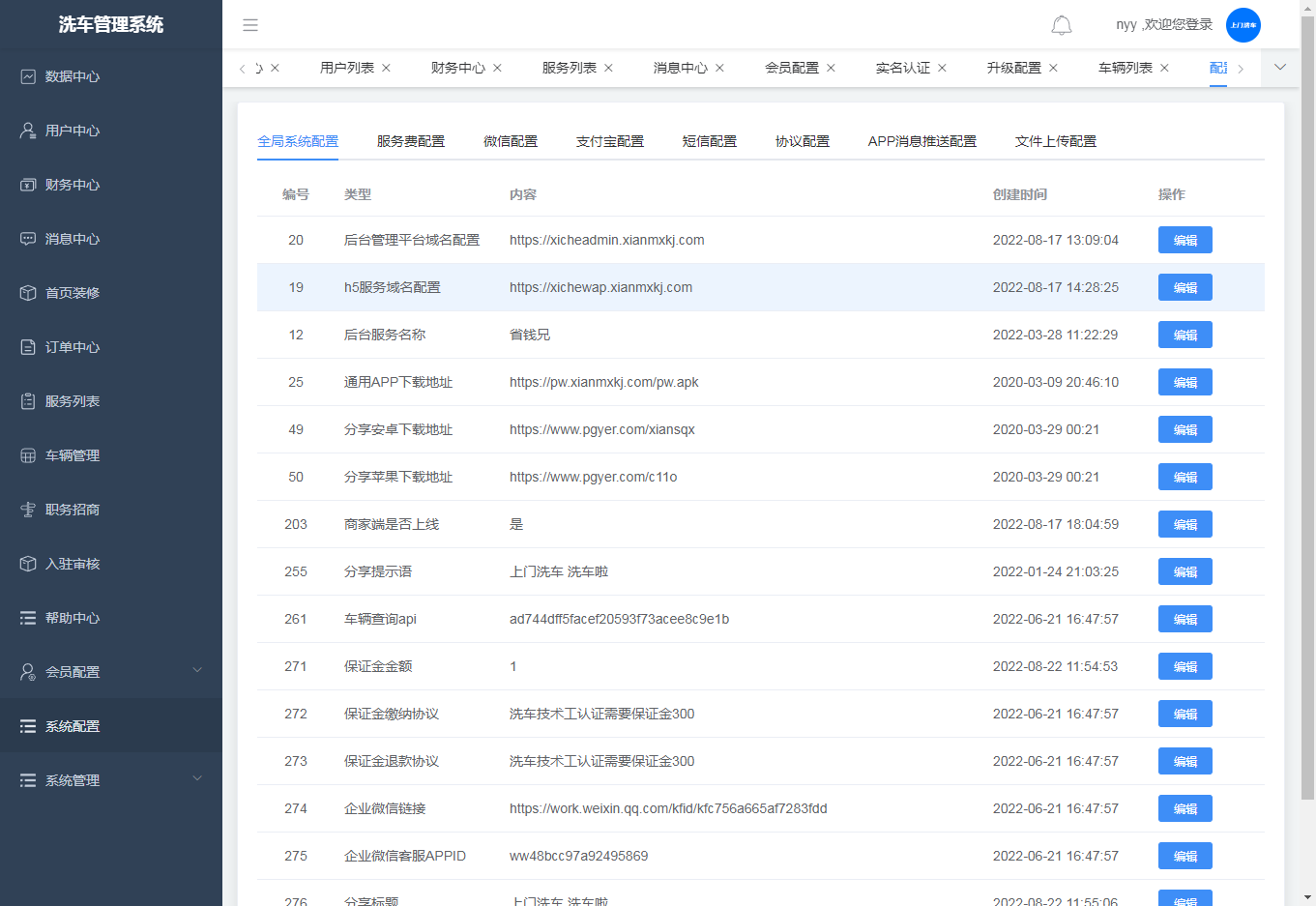 ·全局系统配置,可对配置进行编辑