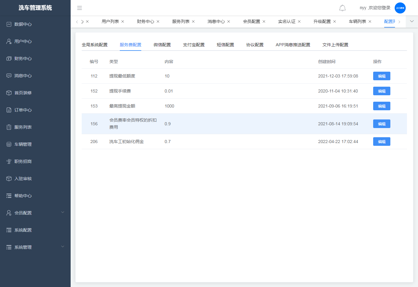 ·服务费配置,可对配置进行编辑