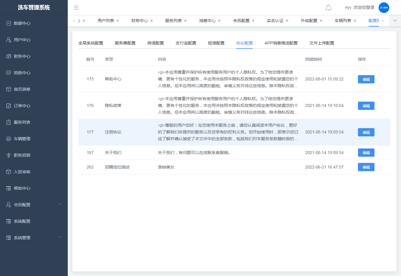 ·协议配置,可对配置进行编辑