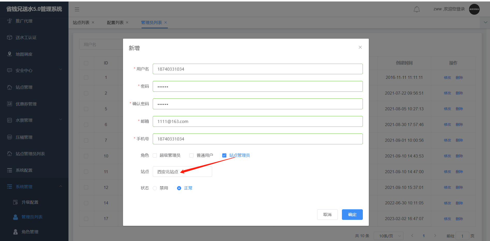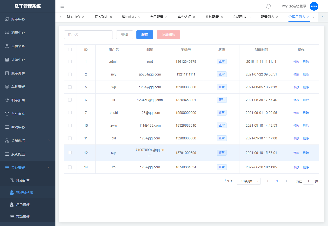 1.管理员列表,可查看、添加、修改、删除管理员