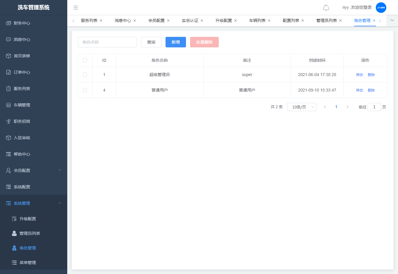 2.角色管理,可添加、删除角色,可根据角色名称查询角色