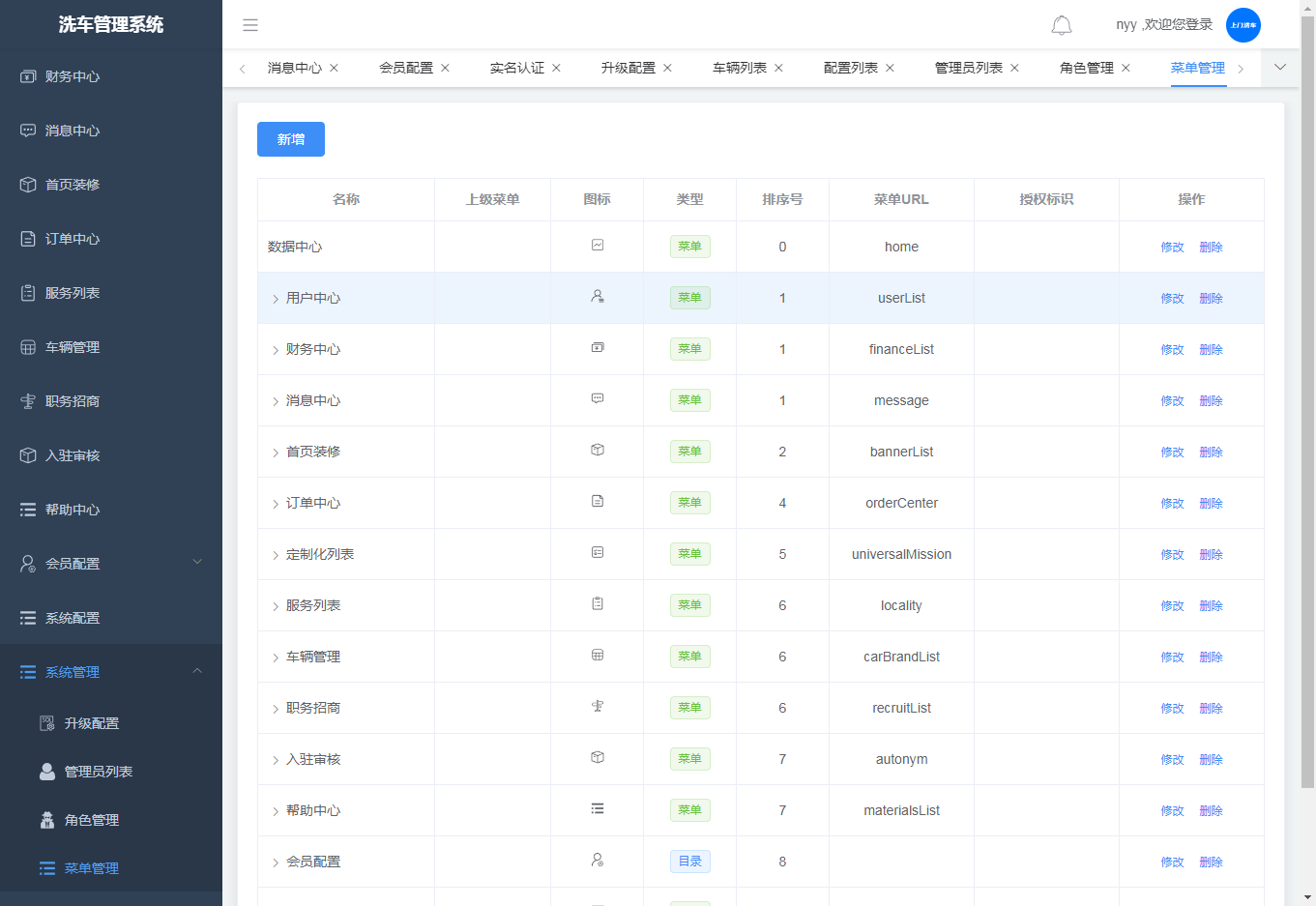 3.菜单管理,可添加、修改、删除菜单(非开发人员,慎重操作)