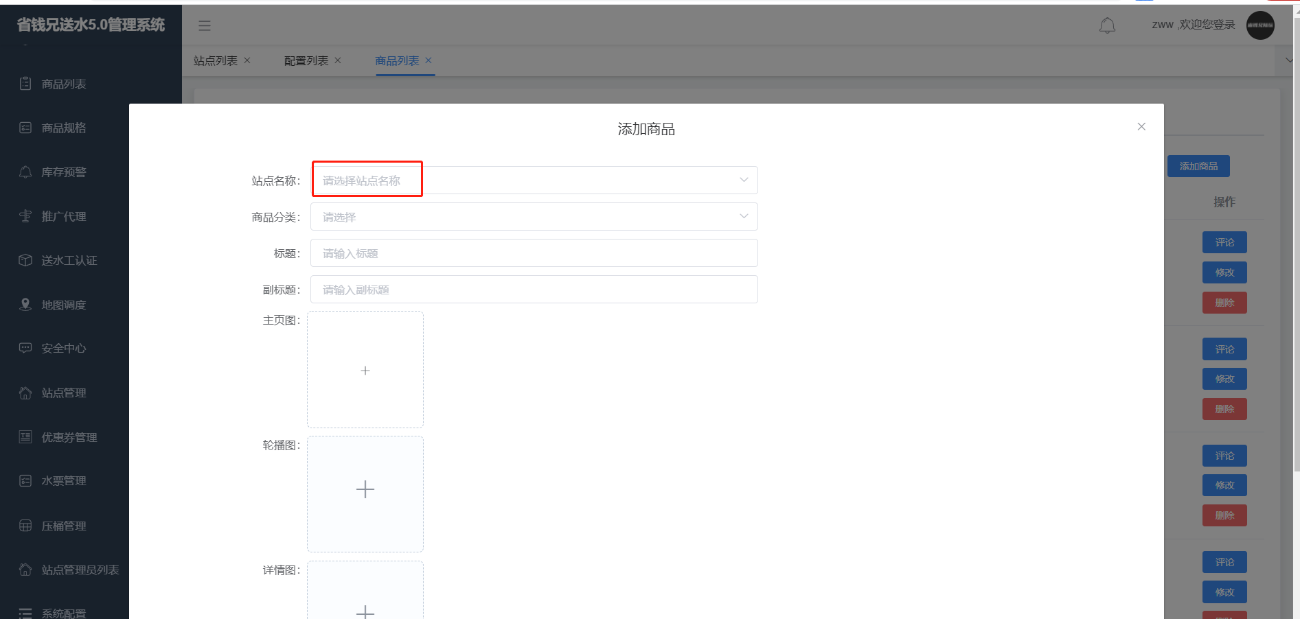 添加商品时,需要和站点绑定,