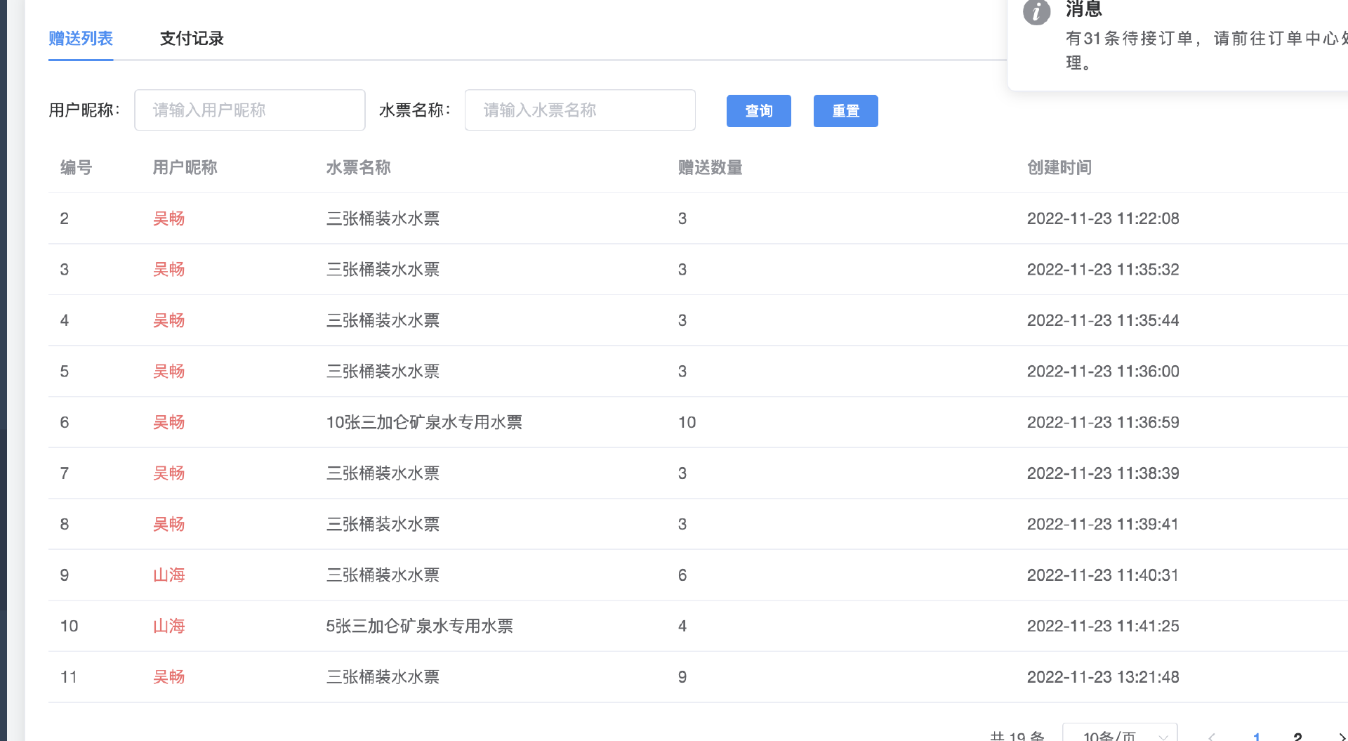 赠送水票