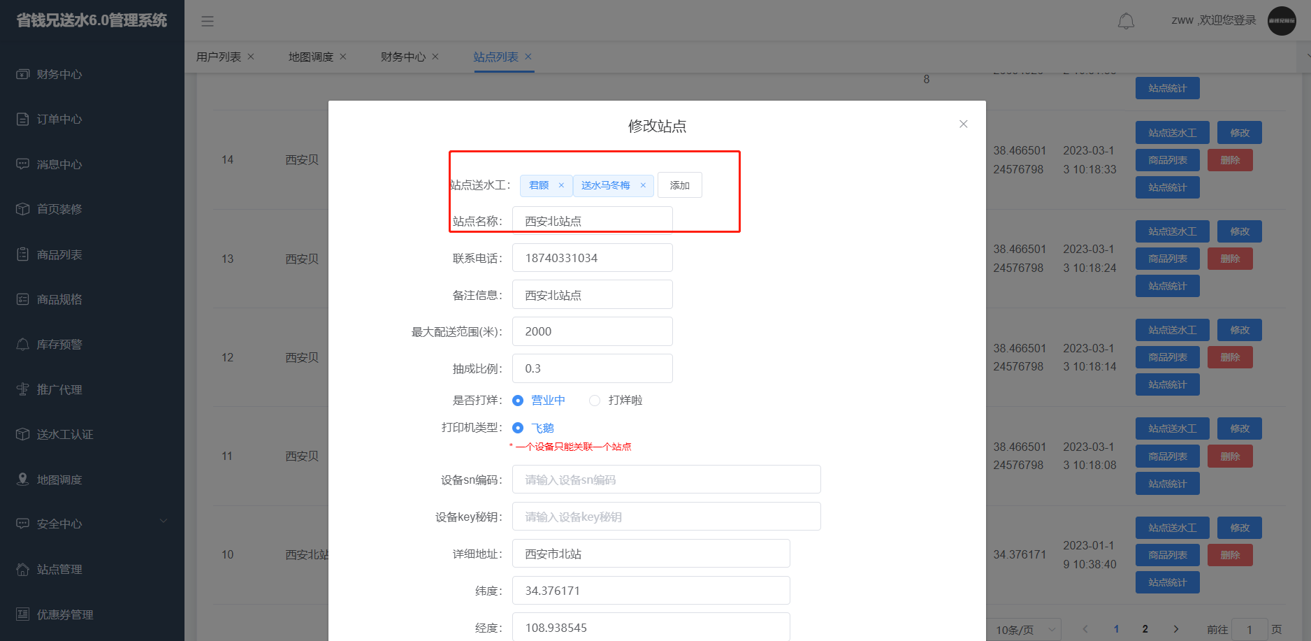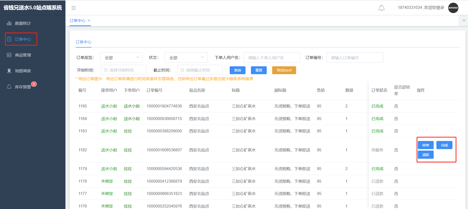 只展示站点是该站点的订单列表,可以退款 ,转单等操作,转单只能给绑定自己站点的师傅转