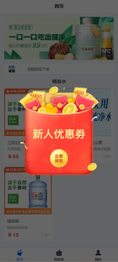 新用户进入首页时,会弹出新人优惠券,可领取
