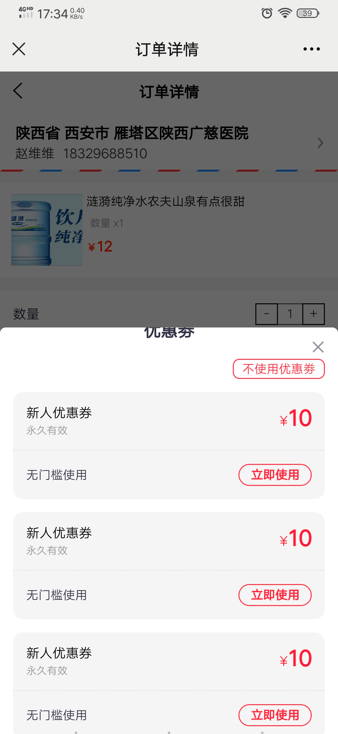 购买水票只能通过微信或者水贝支付,不支持使用优惠券抵扣