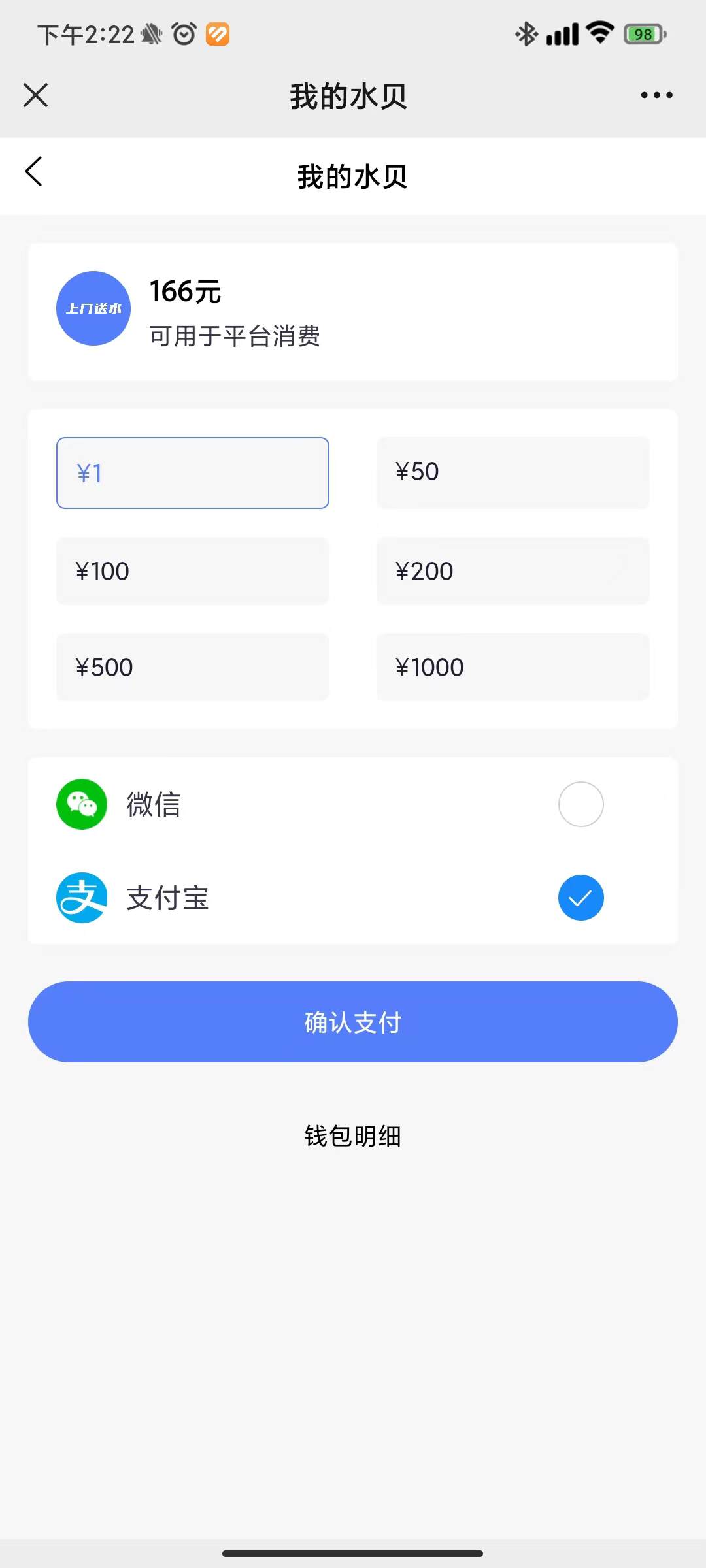 用户可直接支付,也可使用水贝支付,也可购买水票,使用水票支付