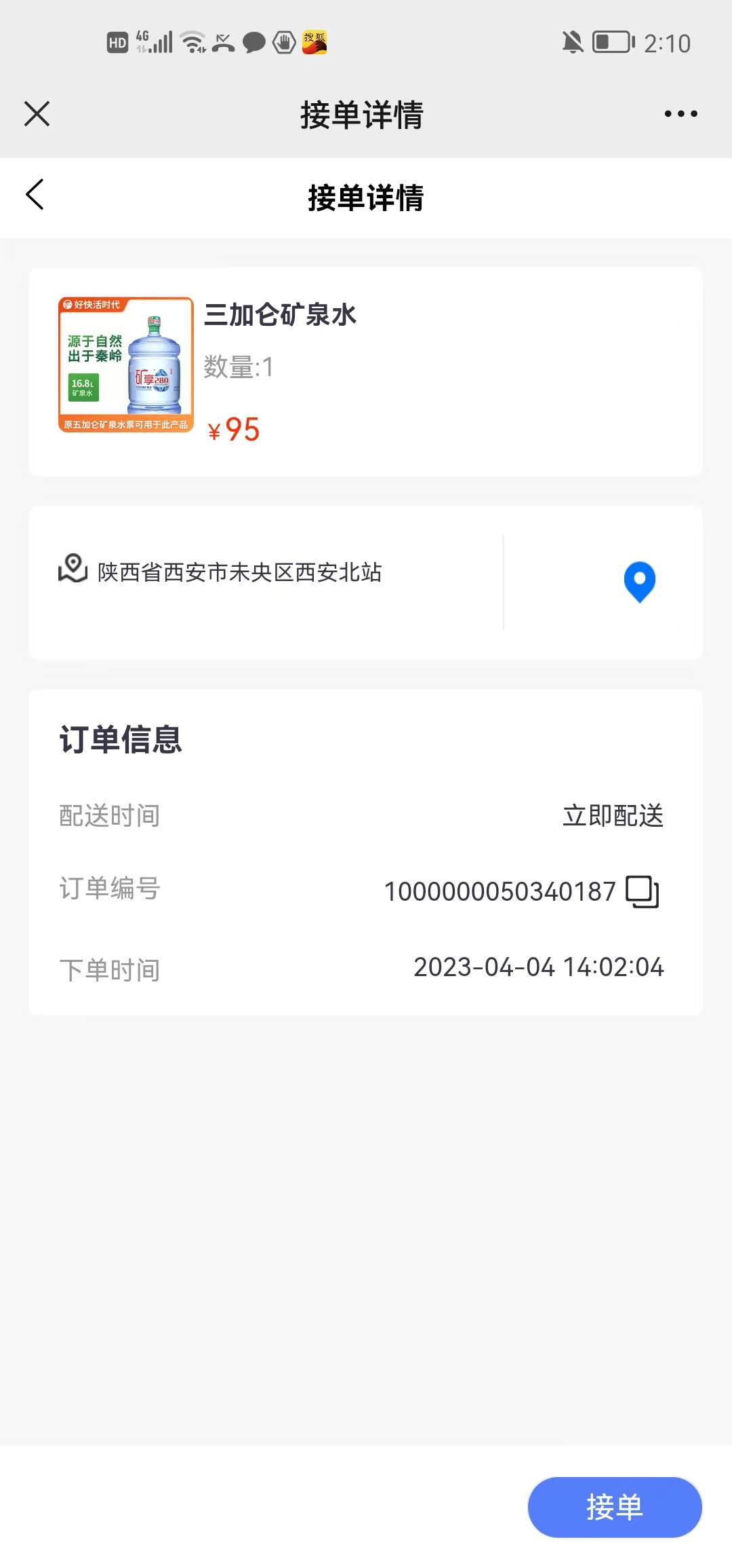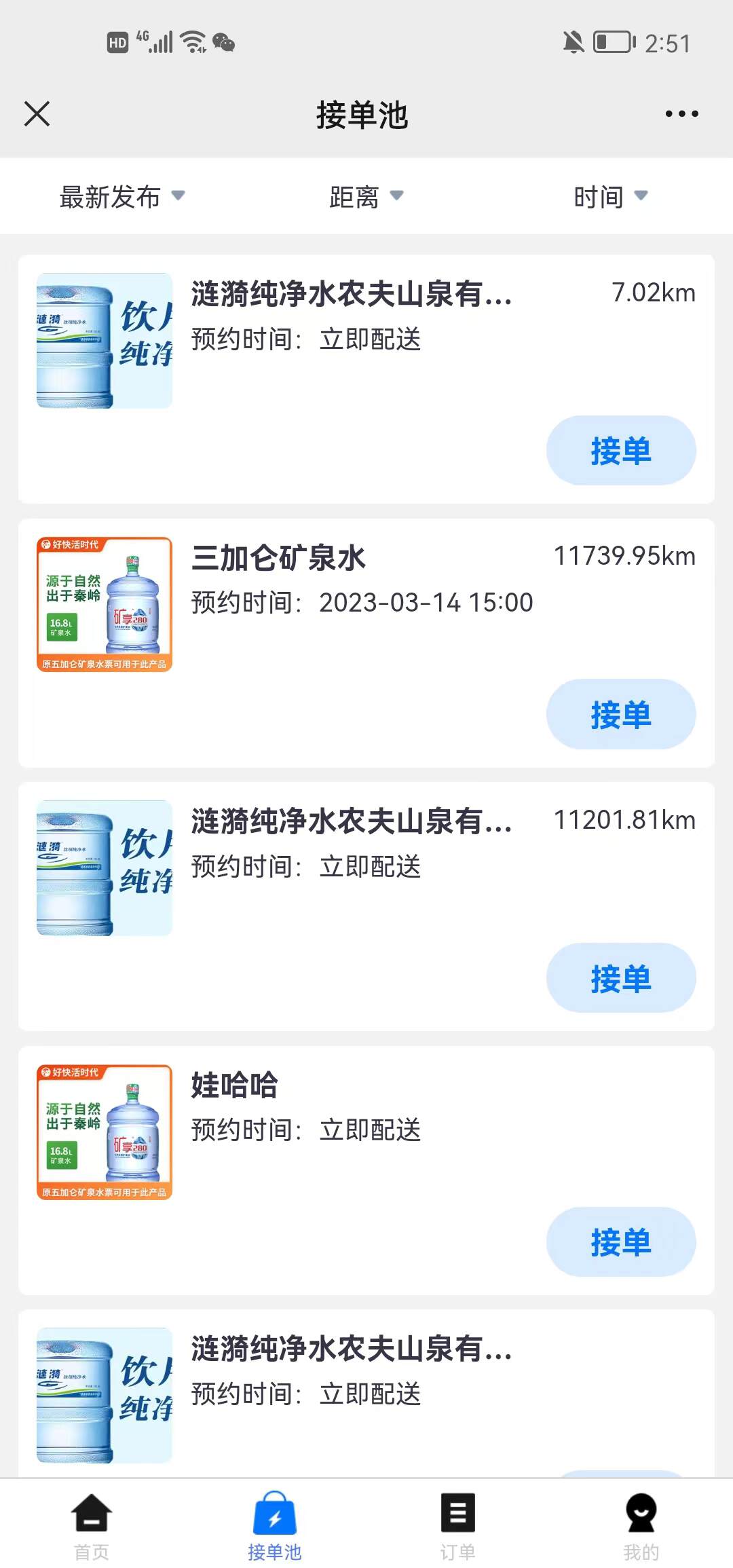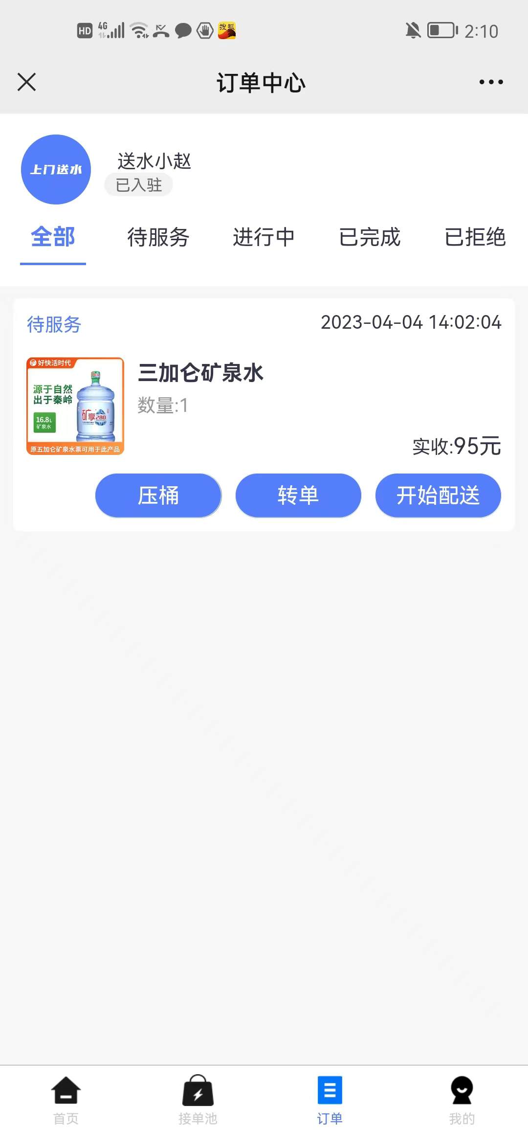 接单可选择压桶数量,也可以转单给其他已经认证成功的送水工