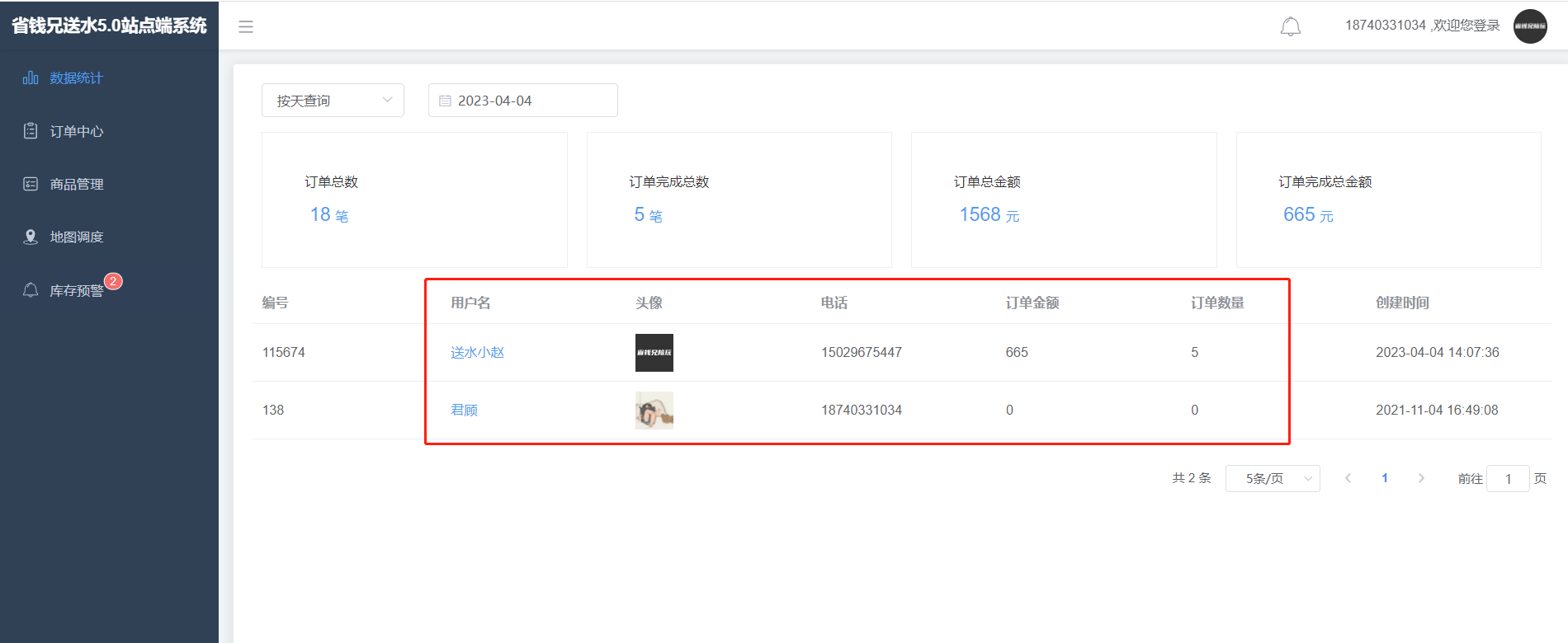 查看绑定我站点的送水工,查看订单统计数据