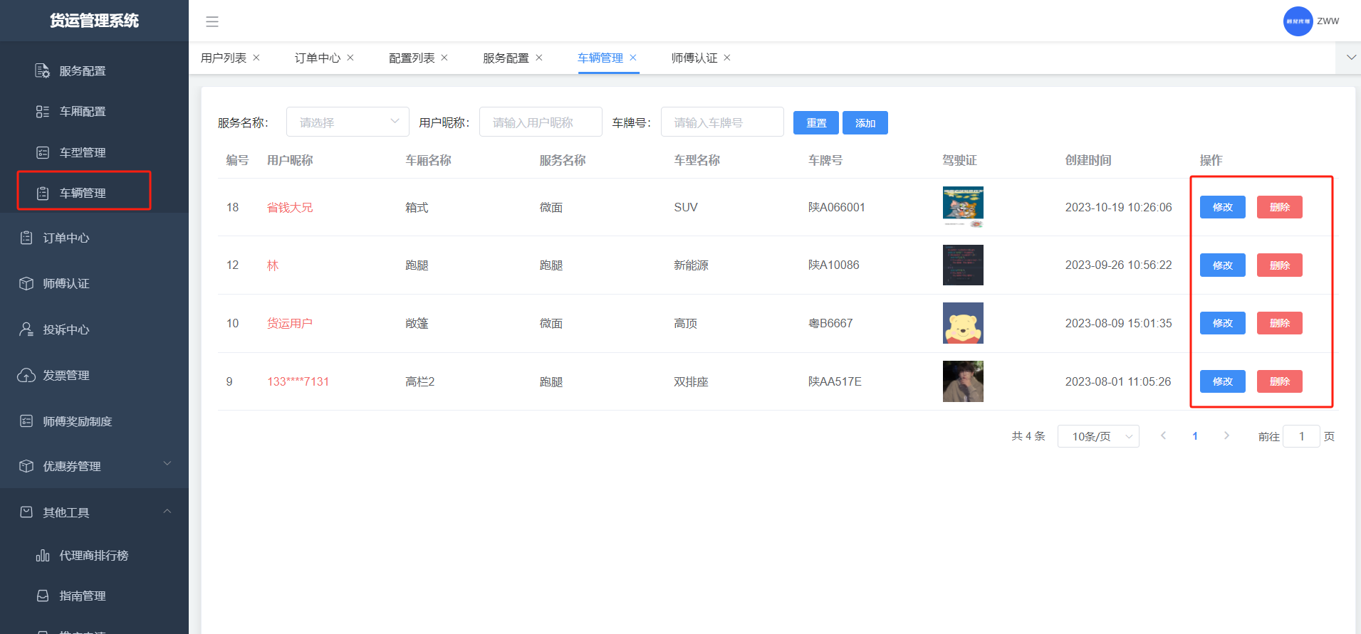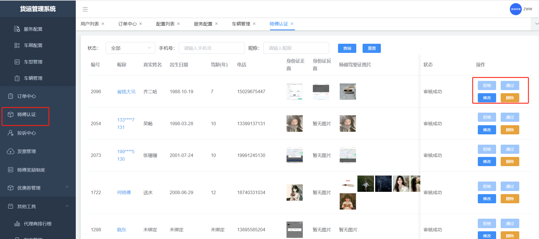 师傅的认证列表,管理端可以进行审核和修改等;