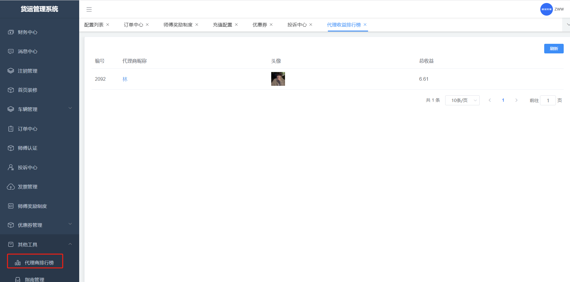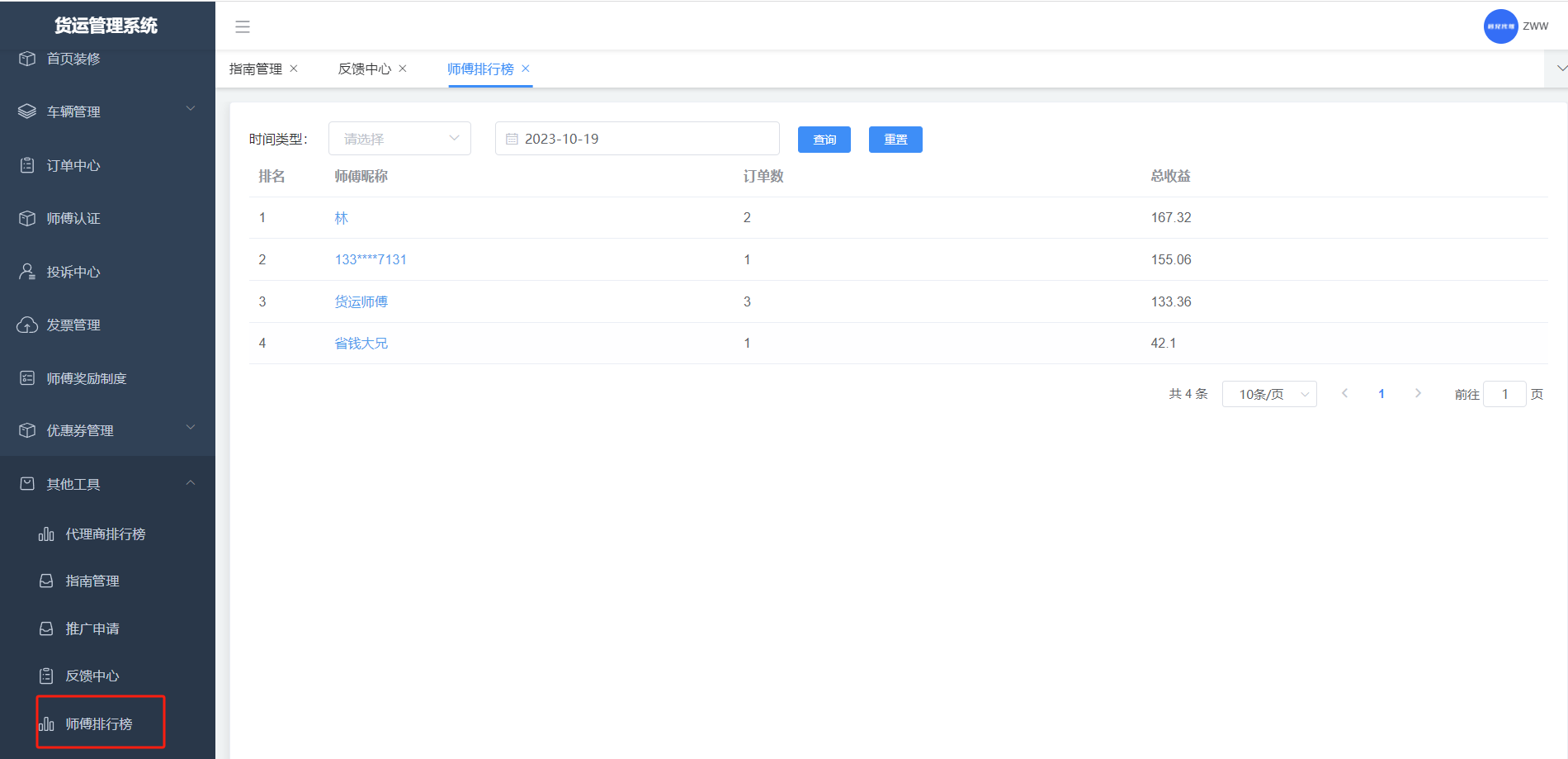 师傅接单并且完成后,他的收益的排行