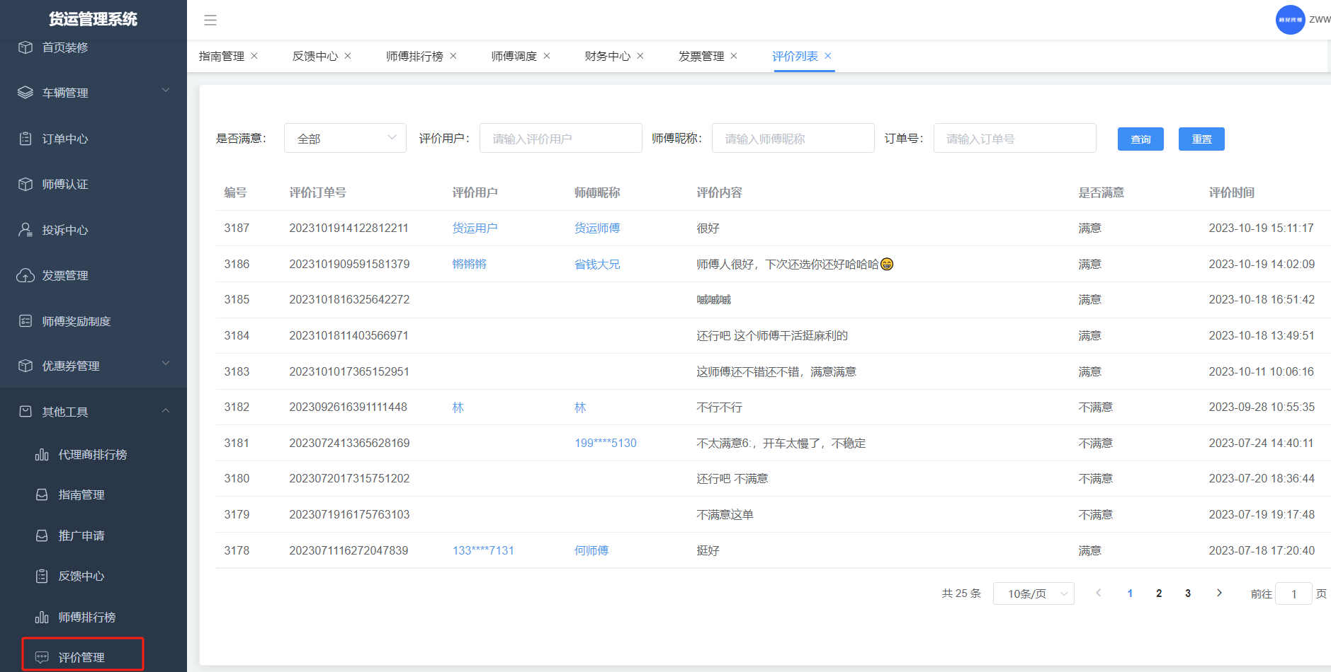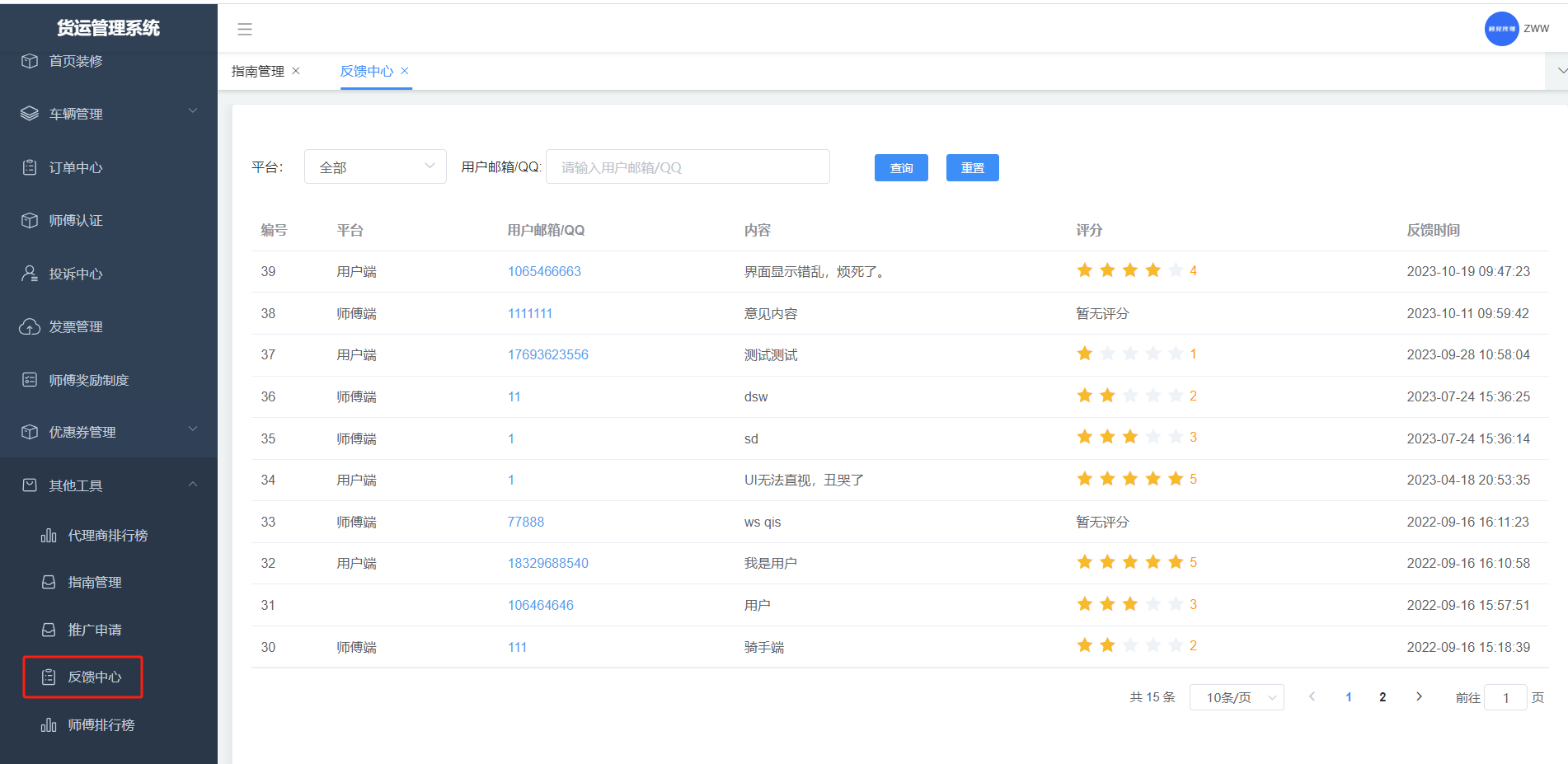 用户或者师傅通过意见反馈提交的内容,管理端可查看