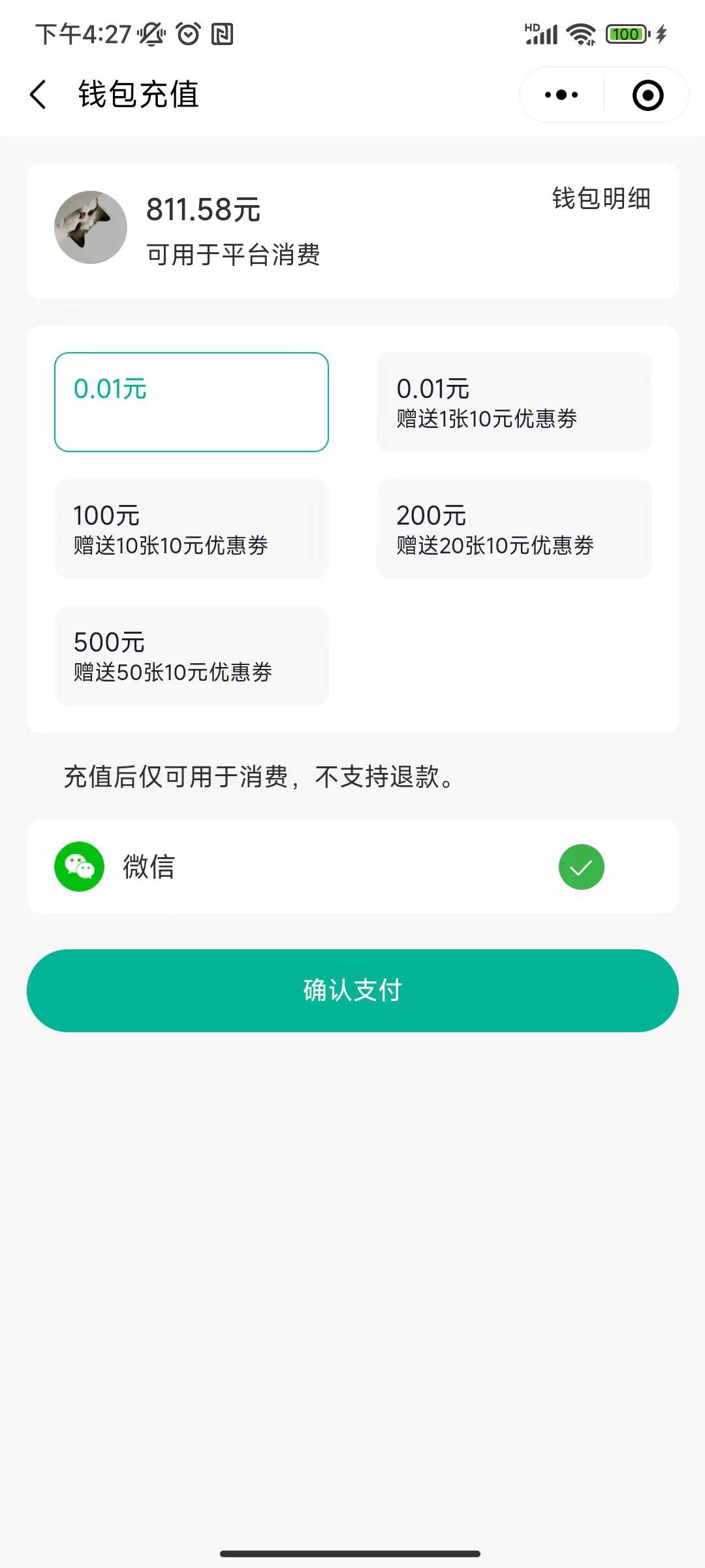 充值固定金额可得到设置的优惠劵;充值金额不支持提现