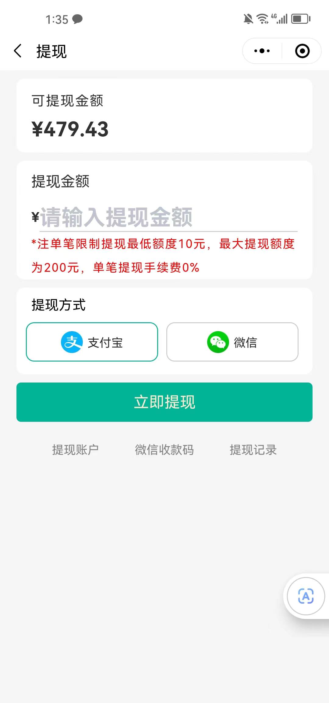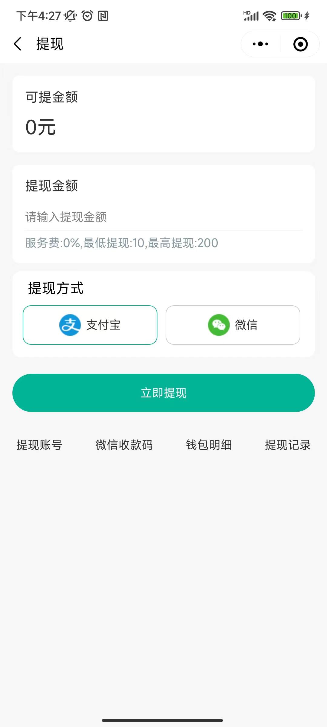 提现方式包括支付宝 和 微信,管理端可开启或者关闭