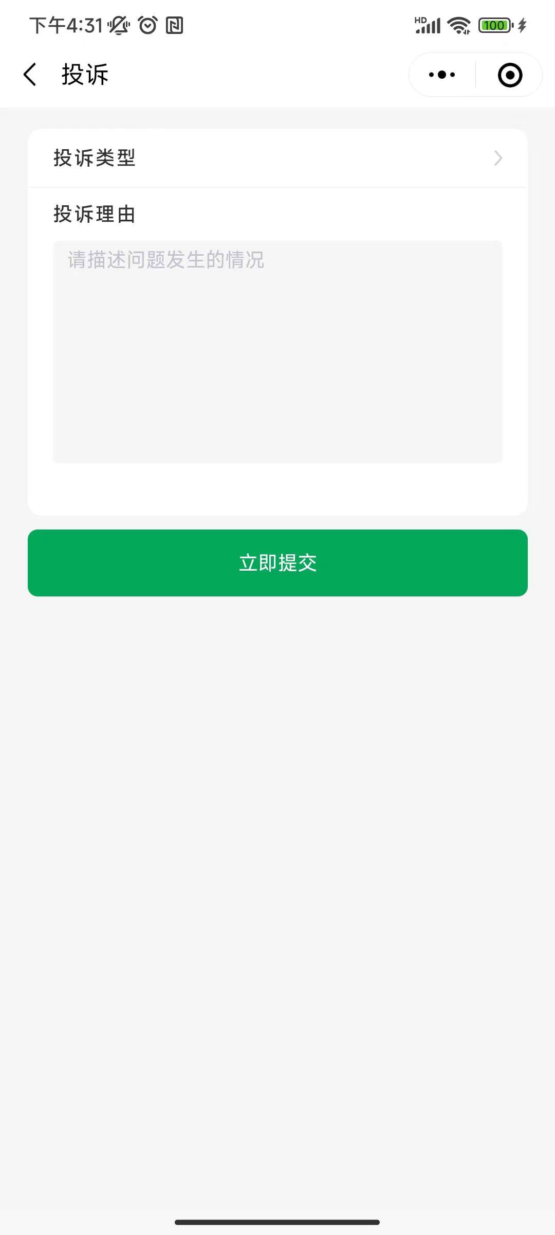 用户的订单完成后,可以对订单进行投诉;