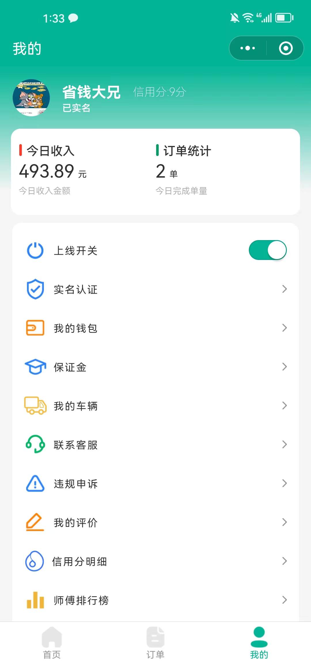 师傅实名认证成功+缴纳了足额的保证金+上线后才能正常接单
