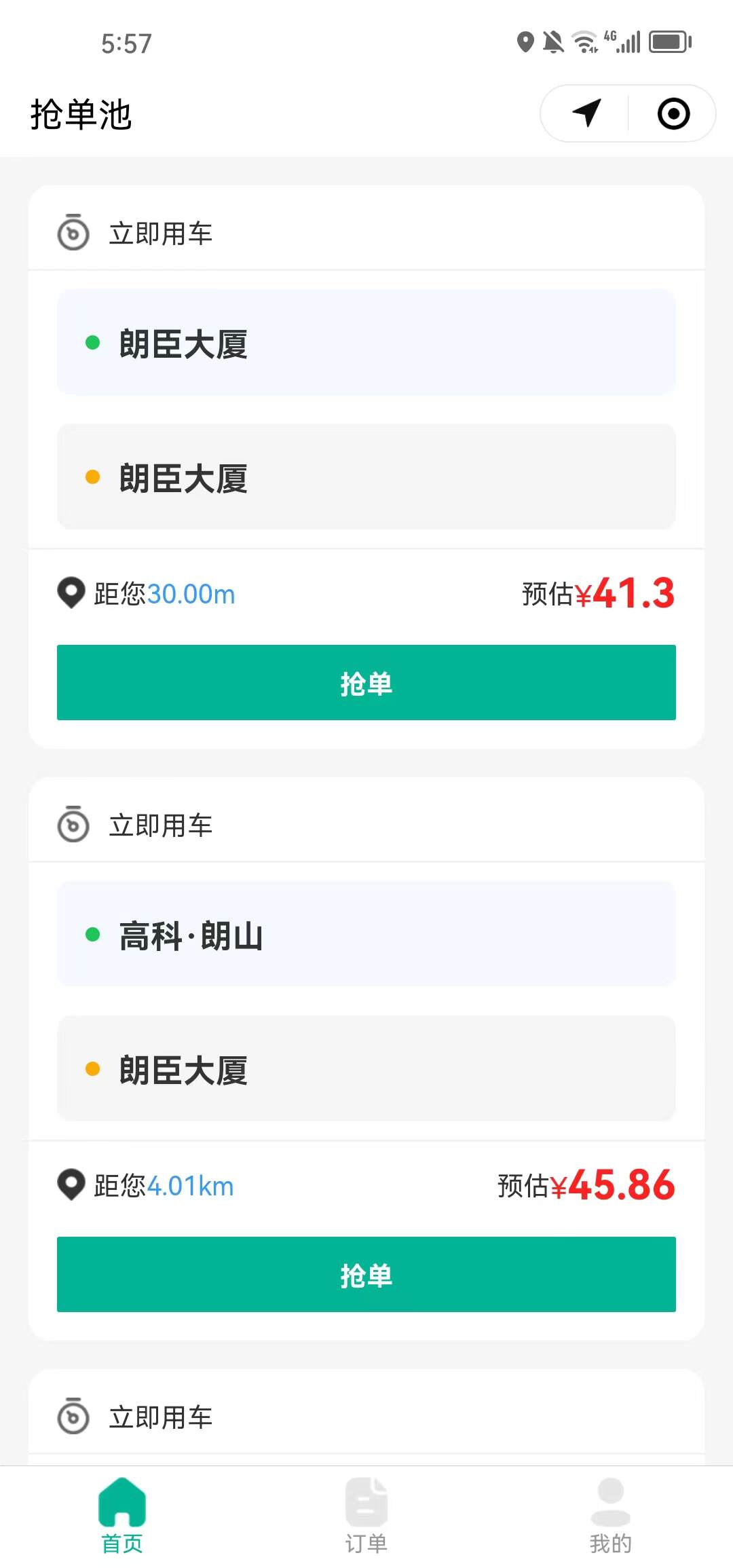 登录后师傅可看到接单池订单,接单成功后可对订单进行操作,到达起点/开始装货/开始卸货/完成订单等;