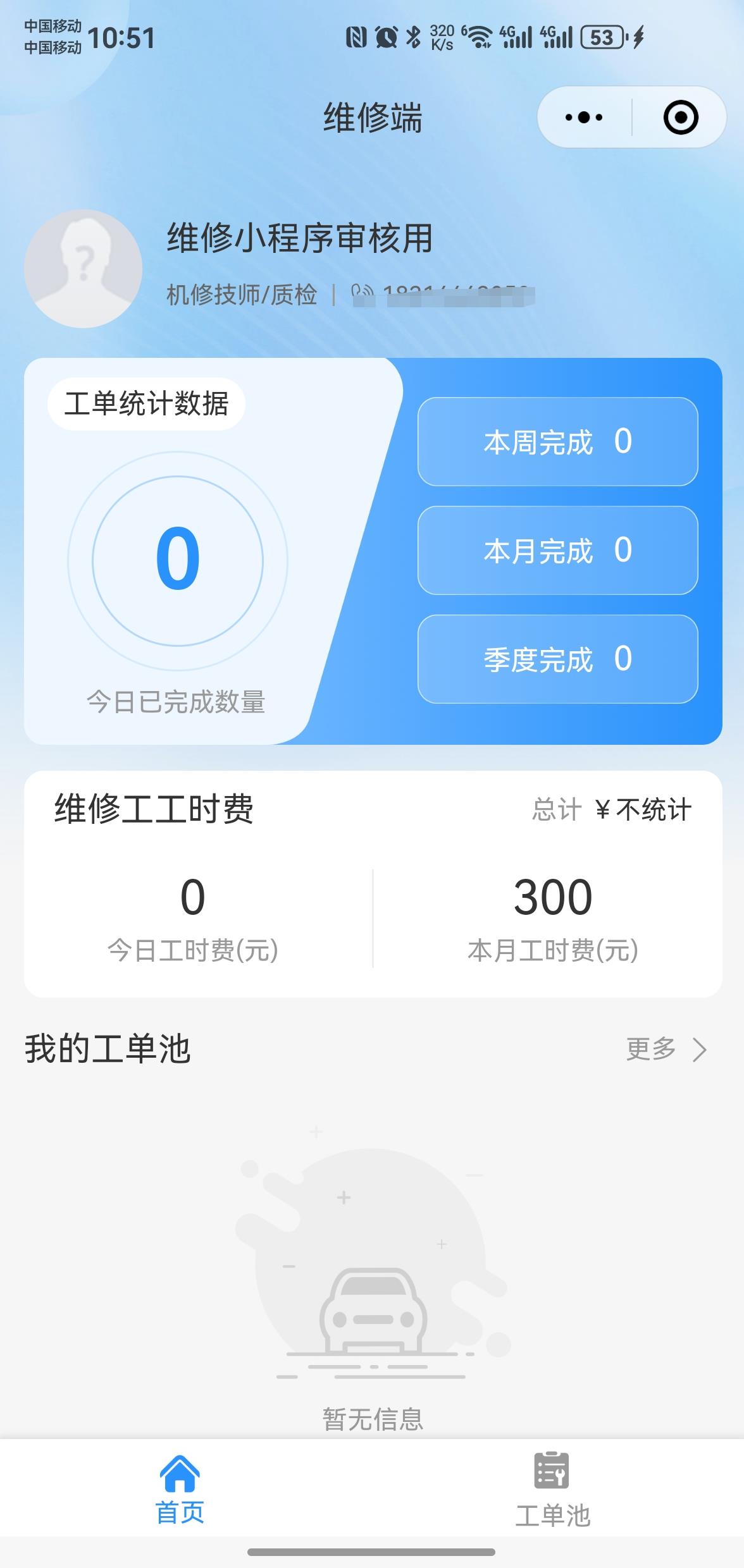 - 公众号H5:接待员、维修员、渠道端接收通知并处理工单。